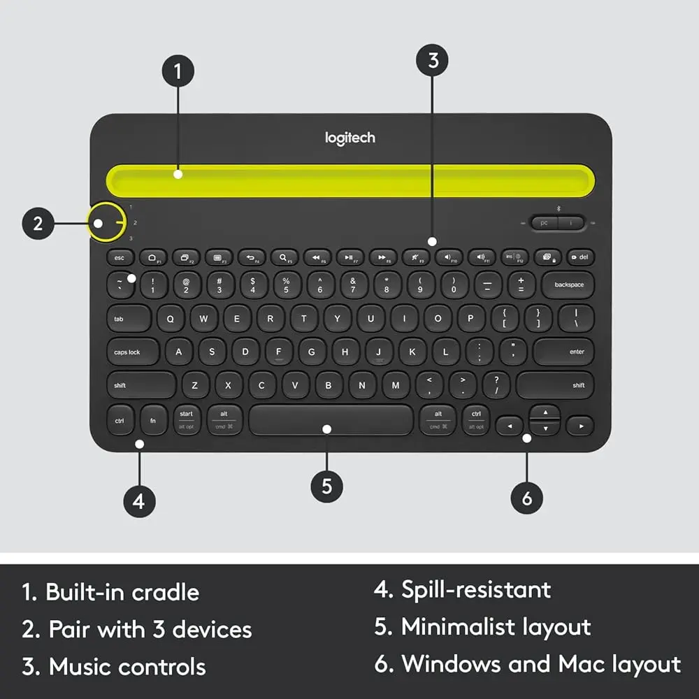 Logitech K480 Wireless Multi-Device Keyboard - Black