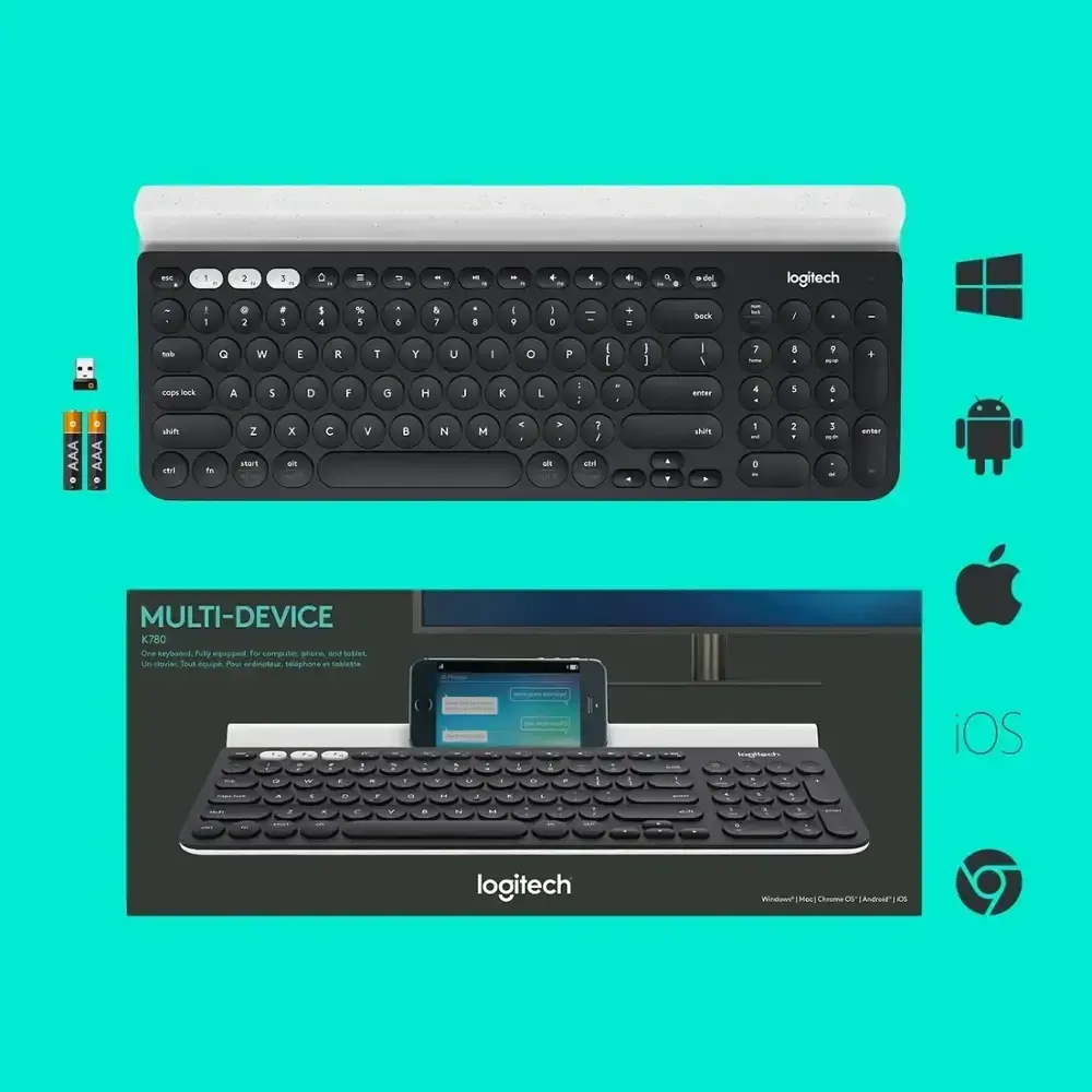 The Logitech K780 Full-size Wireless Scissor Keyboard offers a comfortable and efficient typing experience with its full-size layout, complete with a number pad for added convenience. Enjoy seamless wireless connectivity via Bluetooth for easy pairing with multiple devices. The scissor-switch keys provide quiet, responsive typing, making it ideal for work or study. The integrated device tray allows you to conveniently hold phones or tablets while you type. With an impressive long battery life of up to 2 years on 2 AAA batteries, this keyboard is both durable and reliable. Plus, the multi-device support lets you switch between devices effortlessly, and its sleek graphite color gives it a modern, professional look