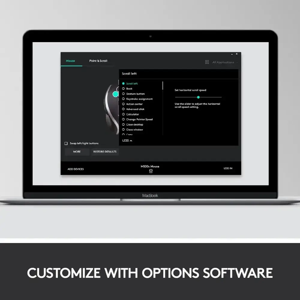 The Logitech Advanced Corded Mouse M500s enhances productivity with hyper-fast scrolling and precision tracking. Designed for comfort and efficiency, it features adjustable 400-4000 DPI for ultra-precise cursor control, 7 customizable buttons for personalized shortcuts, and an ergonomic full-size design with soft rubber grips. Perfect for long hours of work, this plug-and-play wired mouse requires no batteries—just connect via USB and start working seamlessly.