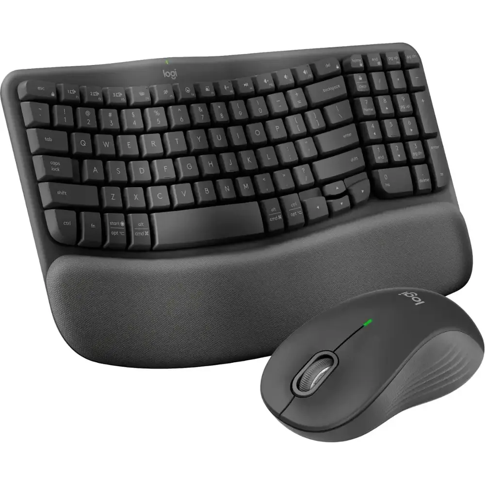 Experience ultimate comfort and productivity with the Logitech Wave Keys Ergonomic Wireless Keyboard and Signature M550 L Wireless Mouse Combo. Designed to keep medium- to large-sized hands comfortable throughout the day, this combo features an ergonomic keyboard with a wavy keyframe design for a natural typing position and a contoured mouse with a rubber side grip for added comfort.