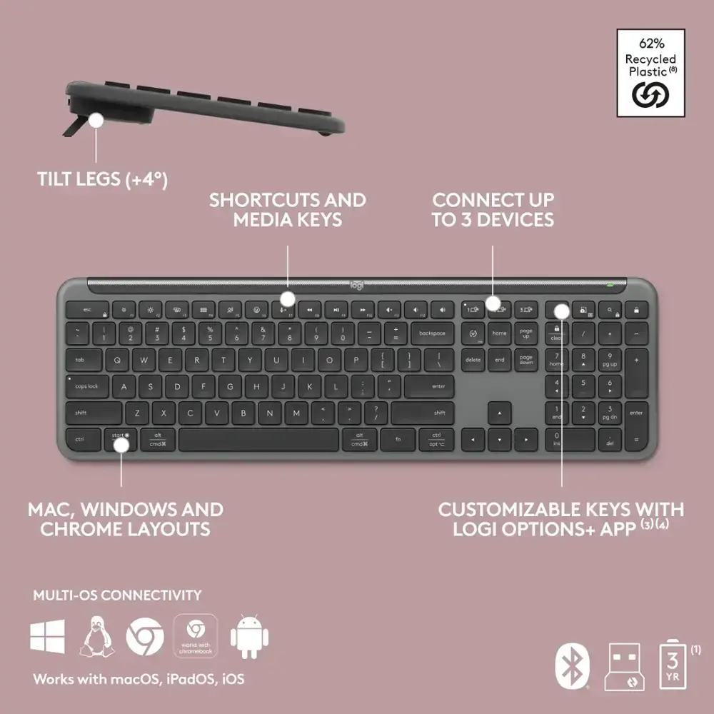 - Cross-Platform Compatibility: Enjoy worry-free wireless connection across most platforms, including Windows, macOS, Chrome OS, Linux, iPadOS, iOS, and Android. Easily pair via Bluetooth or the included Logi Bolt USB receiver.² ³