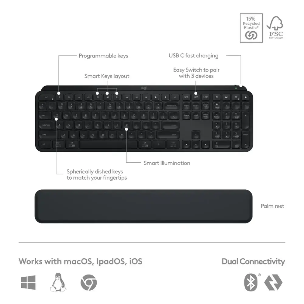 - Multi-Device & Multi-OS Support: Seamlessly switch between up to 3 devices (Windows, macOS, Linux) via Bluetooth or Logi Bolt USB receiver.