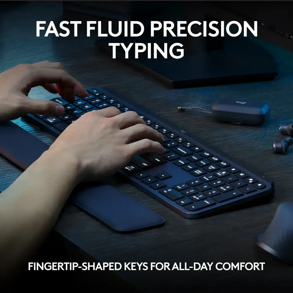 - Comfortable & Ergonomic Design: Designed to provide optimum wrist posture, the MX Keys S ensures comfort during long typing sessions. The solid build and low-profile design reduce strain, helping you stay focused for extended periods.