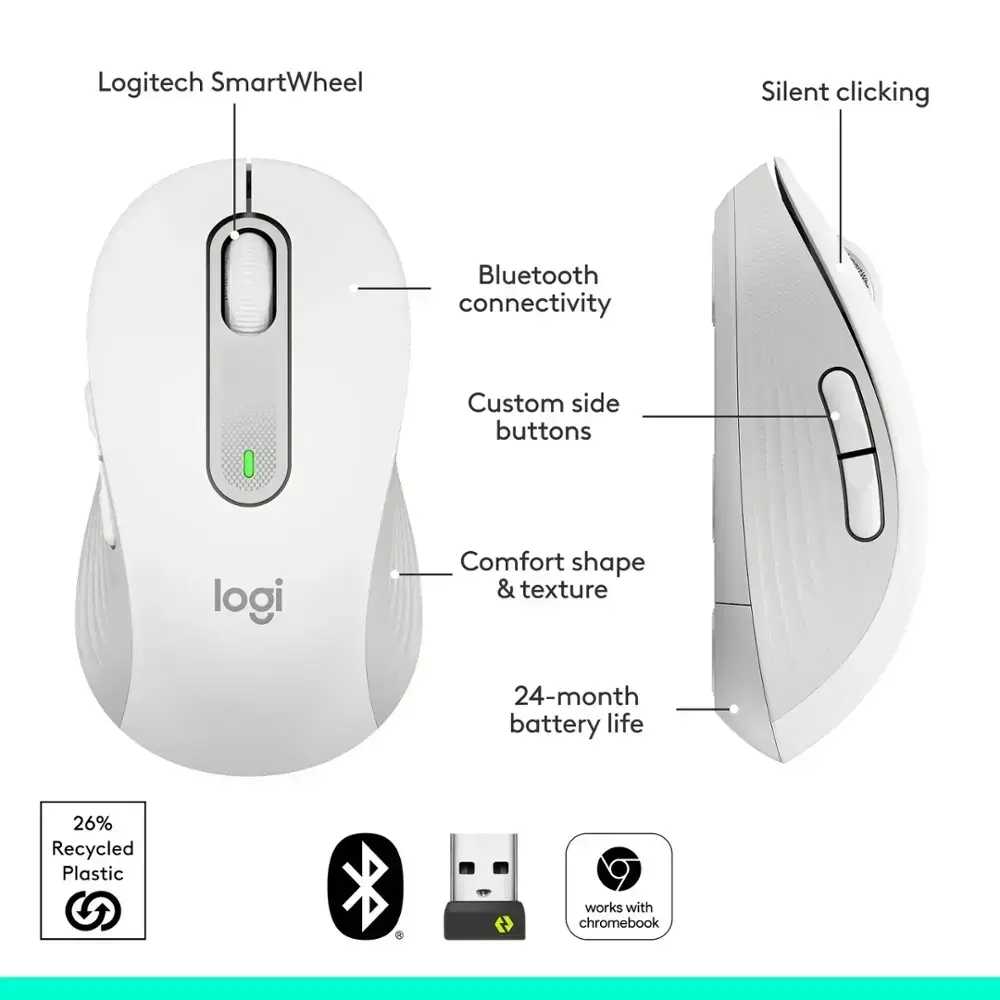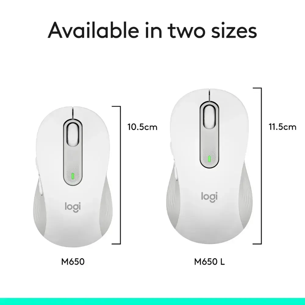 Upgrade to smarter scrolling, better comfort, and increased productivity with the Logitech Signature M650 Wireless Mouse. Featuring an adaptive SmartWheel, this versatile mouse seamlessly switches between precise line-by-line scrolling and super-fast free-spin mode with a flick of your finger. Designed to fit small-to-medium hands, it ensures optimal comfort with a contoured shape, rubber side grips, and a soft thumb area. Seamless wireless connectivity, customizable side buttons, and SilentTouch technology make it a perfect tool for work or home use. With an impressive 24-month battery life and universal compatibility, the Signature M650 is built for effortless performance.