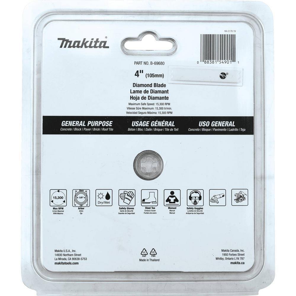 About This ProductThe Makita 4 in. Turbo Rim Diamond Blade is perfect for cutting block, brick, and cured concrete. Its turbo rim design ensures a smooth finish by maintaining constant contact with the material, outperforming segmented blades. Part of Makita's expanding range of concrete solutions.