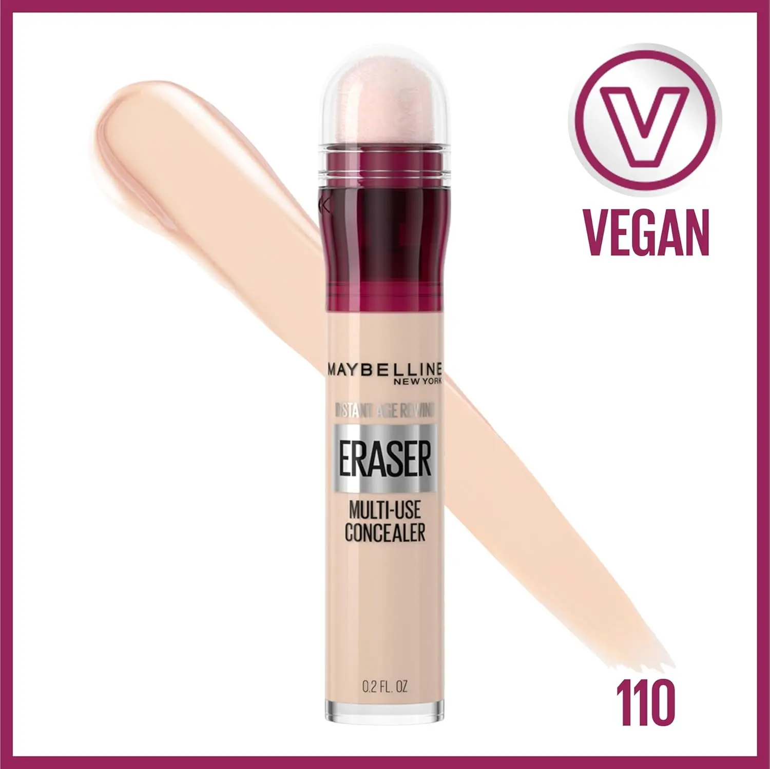 Maybelline Instant Age Rewind Concealer: America's #1 concealer that erases dark circles, corrects redness, and brightens dull skin. Use in multiple shades for contouring and highlighting.Anti-Aging Formula: This concealer, infused with Haloxyl, reduces the appearance of fine lines, blemishes, and dark circles for a refreshed look.Best Face Forward: Maybelline offers a variety of foundations, concealers, primers, and powders for a flawless canvas.Create Any Look: Use Maybelline products for foundations, eye shadows, mascaras, brow pencils, and lip products to achieve any desired look.