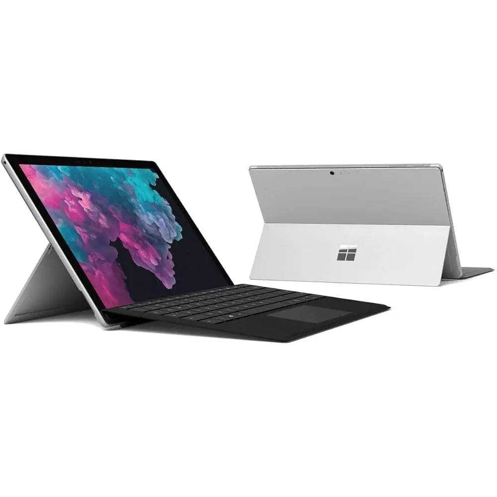 • Microsoft Surface Pro 6 Business Tablet PC with backlit keyboard.