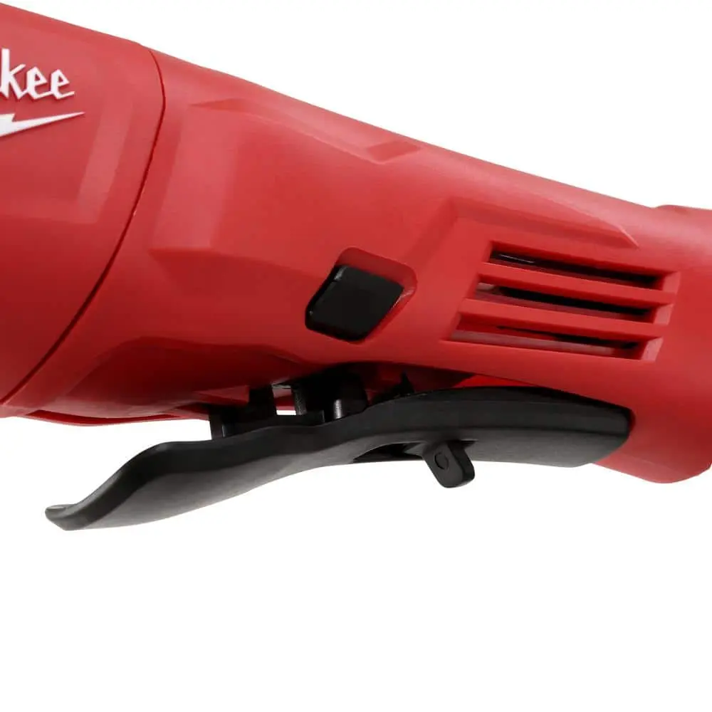 The 11 Amp 4-1/2 in. Small Angle Grinder (Paddle, Lock-On) offers up to 3X more durability and up to 50% more power compared to competitors. Powered by a 1,400 MWO motor, the 6142-30 is built to handle the toughest jobs, making it ideal for industrial use. Its grip circumference is 2 inches smaller than the competition, offering better control and reducing user fatigue during long hours of work. Milwaukee's Electronic Advantage features include Overload Protection to extend motor life, an Electronic Clutch to prevent tool bind-up and increase tool longevity, Line Lock-Out to prevent automatic startup after a power loss, and Soft Start functionality. This tool boasts a 100% tool-free design, allowing users to change all accessories—including hubbed products—without a wrench. Additionally, its tool-free, burst-resistant adjustable guard makes guard installations and adjustments quick and simple.
