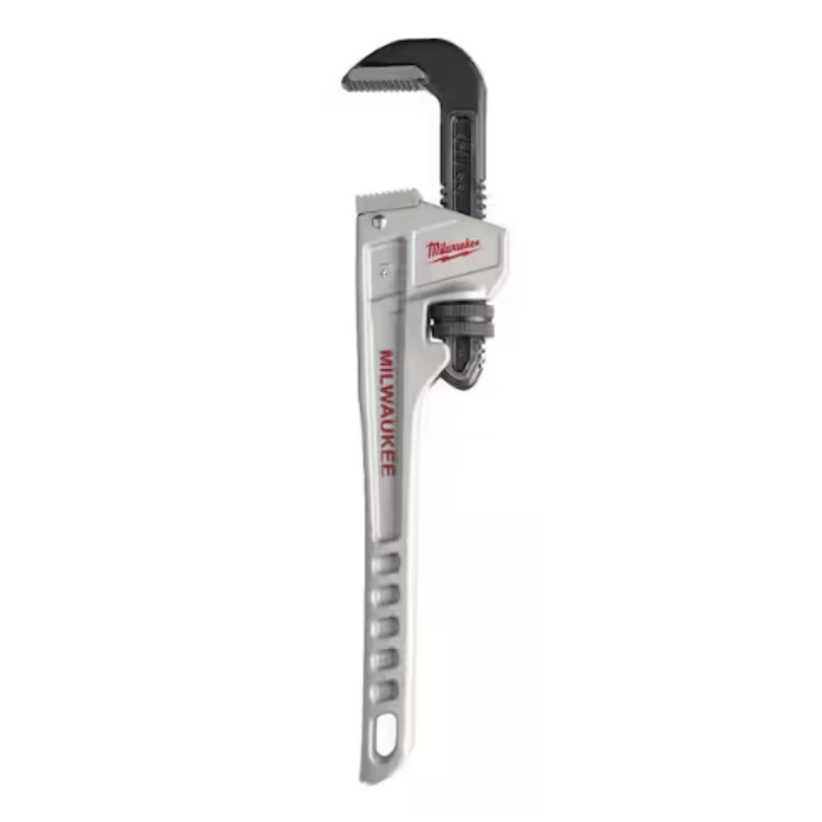 The Milwaukee 14 in. Aluminum Pipe Wrench is built for maximum productivity for professionals. Its overbite jaw design provides the largest gripping surface, while dual coil springs ensure durability. The ergonomic handle offers comfort and won't dig into palms, and through hardened jaws increase grip and tooth durability. With a tether-ready handle loop, it's ideal for tough jobsites, backed by Milwaukee's Limited Lifetime Warranty for peace of mind.