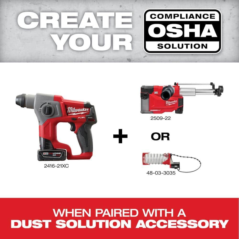 The Milwaukee M12 FUEL 5/8 in. SDS Plus Rotary Hammer Kit offers up to 75% faster drilling, 70% less vibration, and double the runtime compared to competitors, along with the highest SDS Plus bit capacity in its class. This impressive performance is achieved through Milwaukees advanced POWERSTATE Brushless Motor, REDLITHIUM Battery Pack, and REDLINK PLUS Intelligence, which together provide optimized performance, overload protection, and durable battery construction. With its electro-pneumatic design, it can drill up to 5/8 in. holes in concrete and masonry. Despite its powerful performance, the tool is compact, measuring just 10 in. in length and weighing only 3.9 lbs., offering the effectiveness of a larger tool in a much lighter and more manageable size. It features a 2-mode operation, allowing for both rotary hammer and rotation-only modes for enhanced versatility. The kit includes one M12 REDLITHIUM XC 4.0 Extended-Capacity Battery Pack, one M12 Charger, and a plastic carrying case.