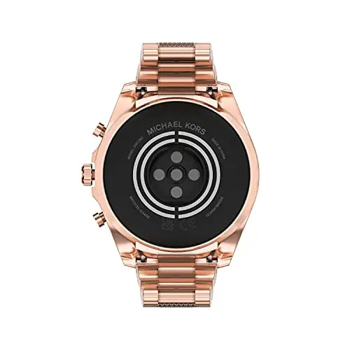 The Michael Kors 44mm Gen 6 Bradshaw Smartwatch seamlessly blends cutting-edge Wear OS by Google technology with a luxurious design. It features a rose gold-tone case and matching stainless steel bracelet with pavé-accented center links, adding a glamorous touch to your wrist.