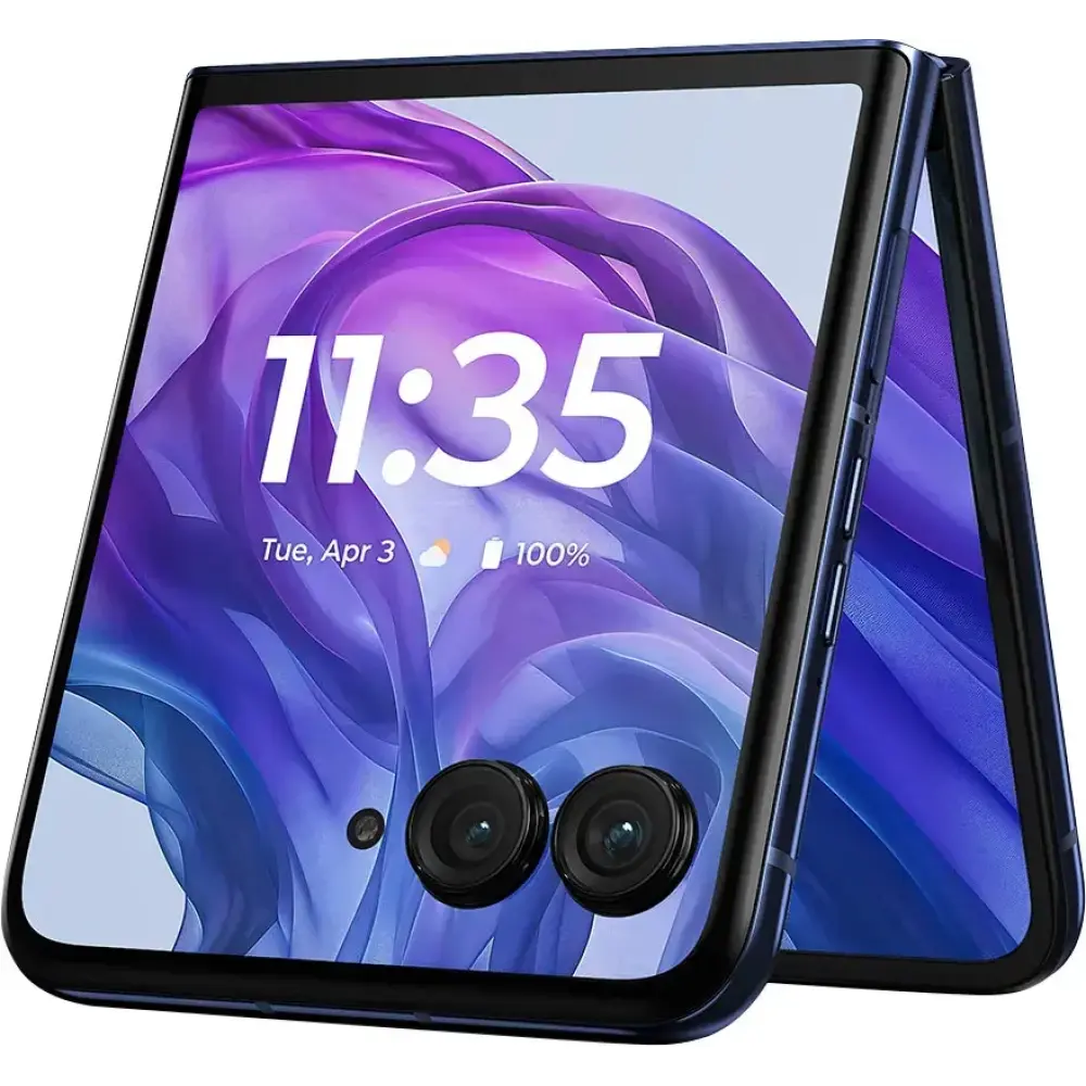 The Motorola Razr+ 2024 256GB (Unlocked) in Midnight Blue combines powerful features with a sleek foldable design. With 256GB of storage and 8GB RAM, it provides ample space and smooth performance for all your apps and media. The phone features a stunning 6.9" pOLED main display with a 144Hz refresh rate, ensuring smooth visuals and an immersive experience. The device also includes a 3.6" external Quick View display, allowing you to access notifications and control functions without unfolding the phone. Capture stunning photos with the 50MP main camera and take sharp selfies with the 32MP front camera. Powered by the Snapdragon 8 Gen 1 processor, the Razr+ delivers fast and efficient performance. The phone is equipped with a 3800mAh battery and supports 30W TurboPower fast charging, so you can stay powered up throughout the day. As an unlocked 5G smartphone, it offers compatibility with most major carriers, all wrapped in a stylish Midnight Blue finish
