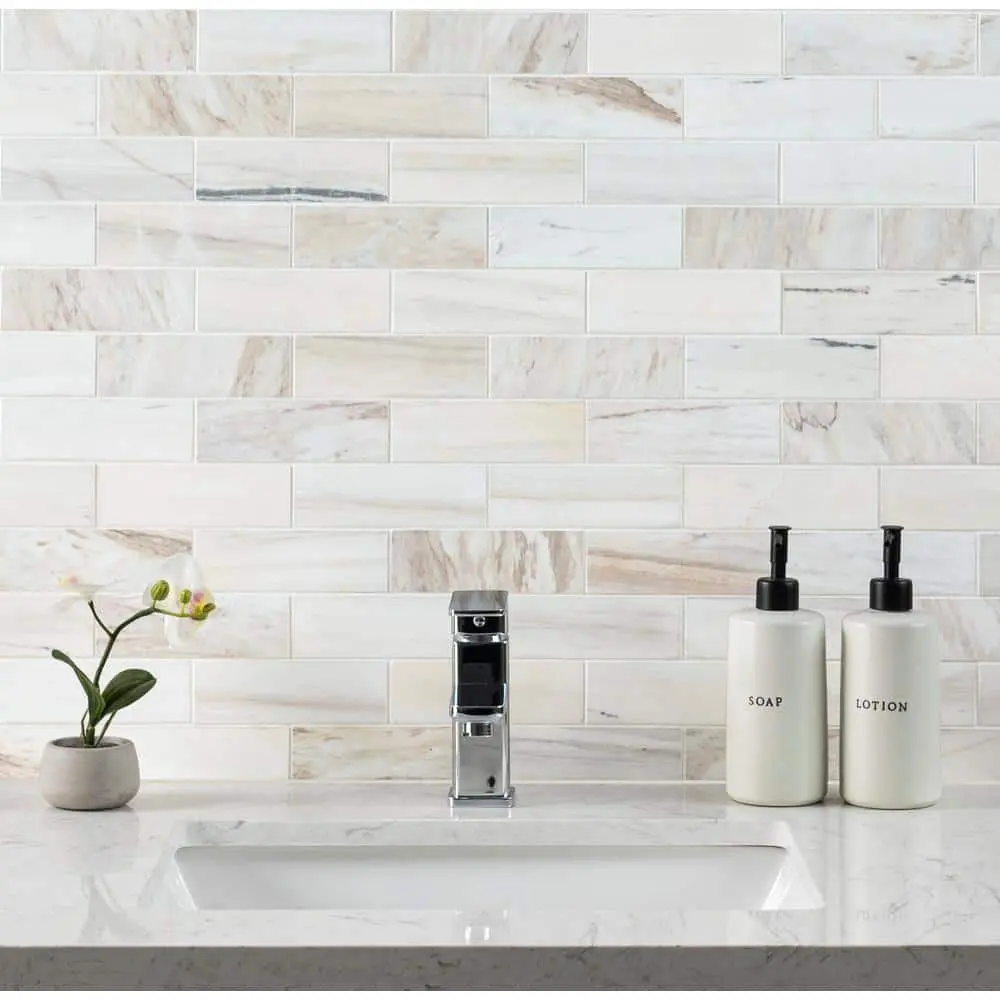 Enhance your space with the MSI Angora Subway Polished Marble Mosaic Tile, featuring a 12 in. x 12 in. size and a mesh-mounted design for easy installation. Crafted from premium polished marble, this tile offers a smooth, elegant finish that adds a touch of sophistication to any setting. Perfect for both floors and walls, it provides durability and long-lasting quality, making it ideal for kitchens, bathrooms, and accent walls. Each tile covers 0.97 sq. ft., ensuring a seamless and stylish upgrade to your home