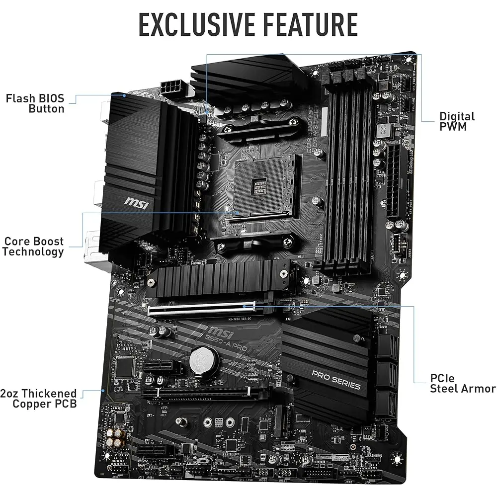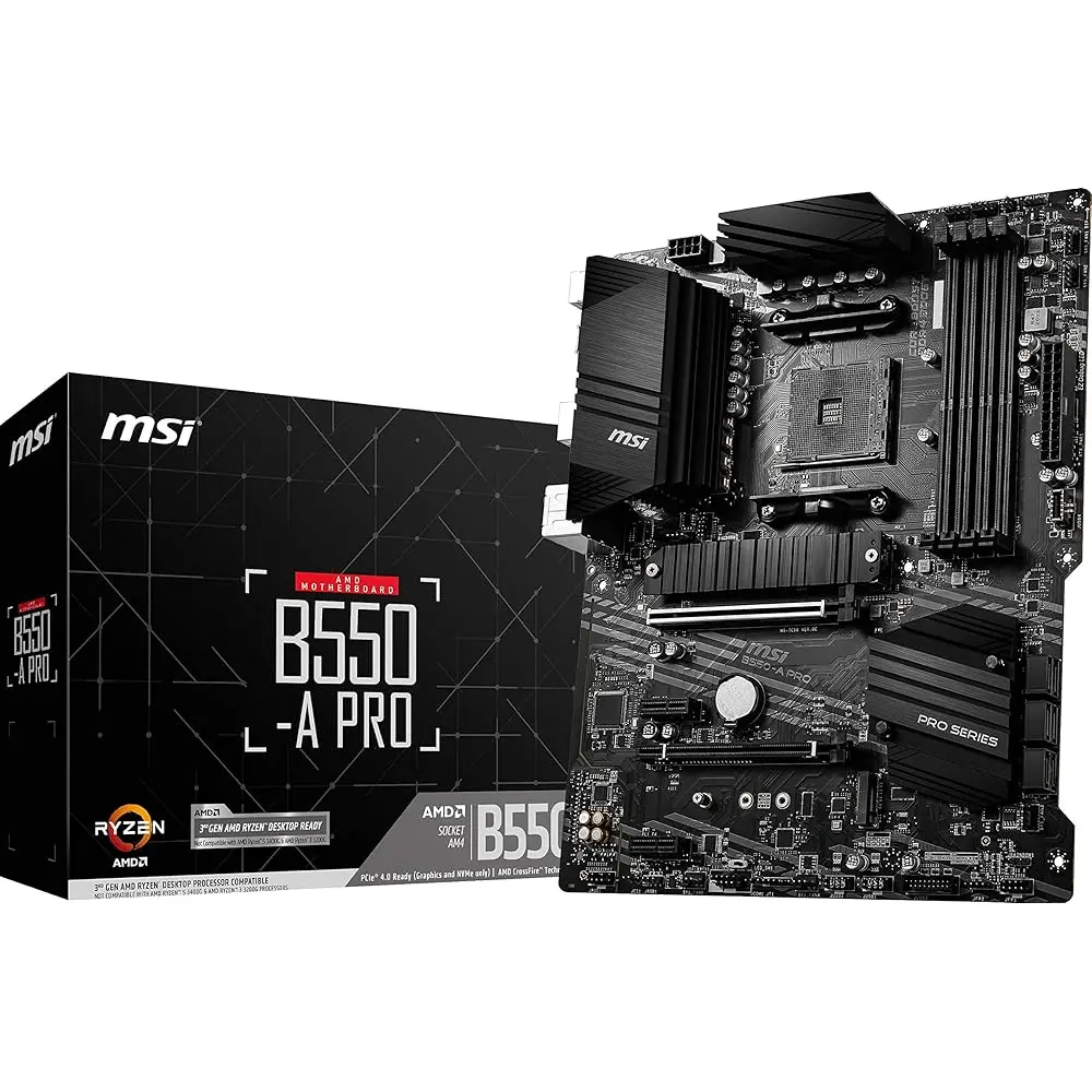 The MSI B550-A PRO ProSeries motherboard is a powerful and reliable foundation for your next PC build. It supports a wide range of AMD Ryzen processors, including the latest 5000 series, making it perfect for gamers, content creators, and everyday users.