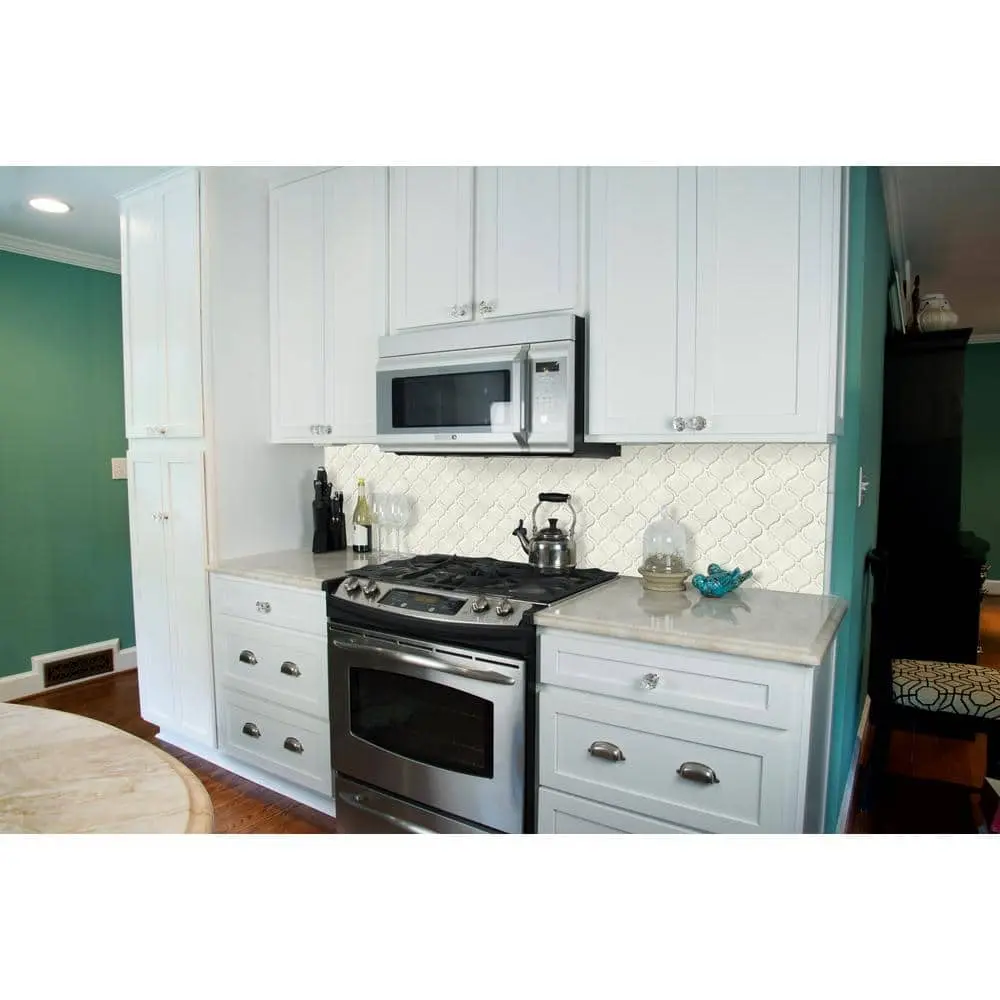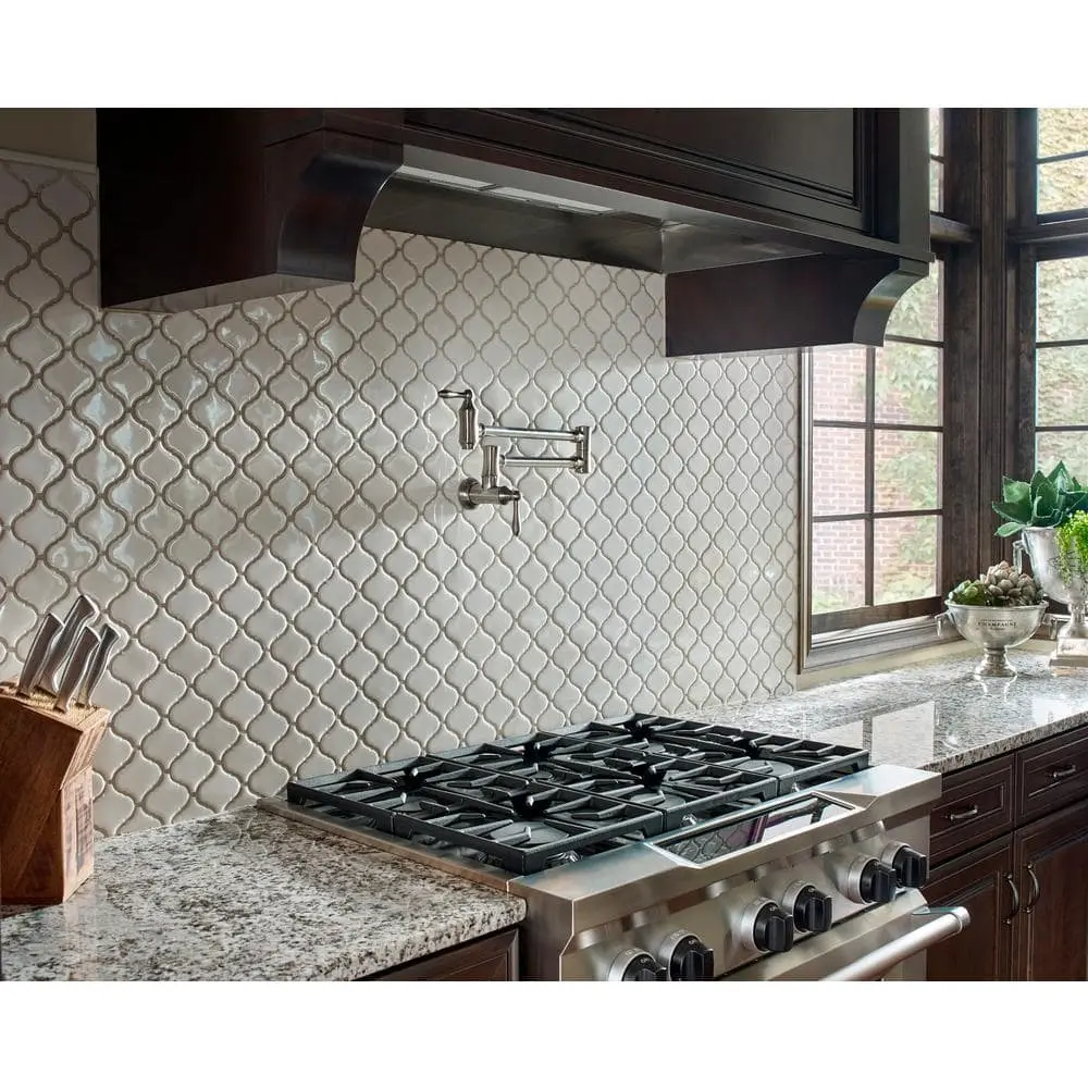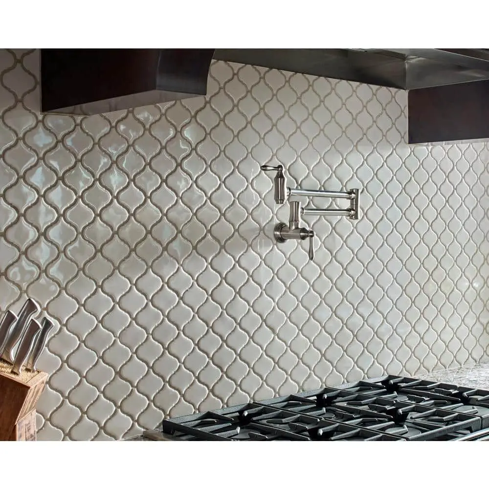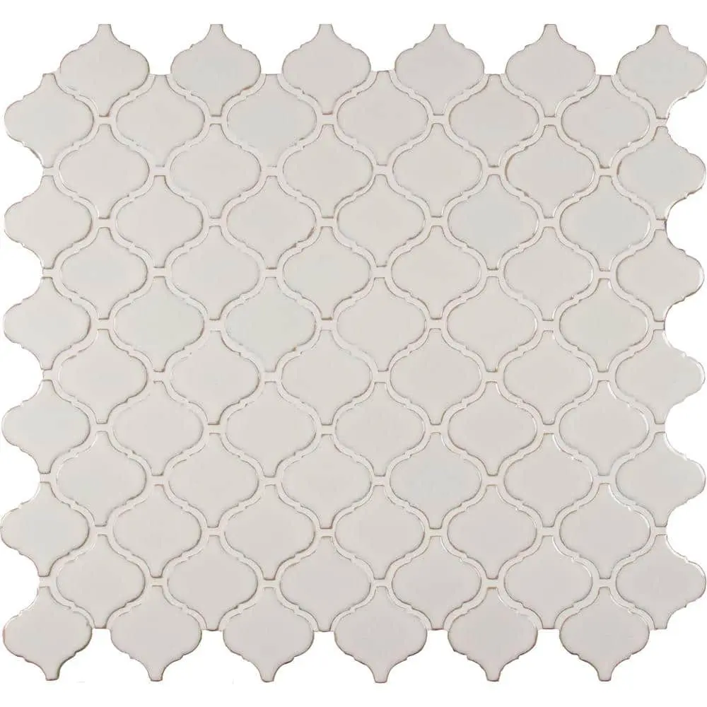 The MSI Bianco Arabesque 10 in. x 11 in. Glossy Porcelain Mesh-Mounted Floor and Wall Mosaic Tile features a timeless glossy Bianco Arabesque design, offering a touch of elegance to any space. With tile dimensions of 10 in. x 11 in., it covers 0.73 sq. ft. per tile, making it versatile for both floor and wall applications. Crafted from durable porcelain, it provides long-lasting durability and is easy to maintain. The mesh-mounted backing ensures a quick and simple installation, making this tile an ideal choice for kitchens, bathrooms, and other interior spaces.