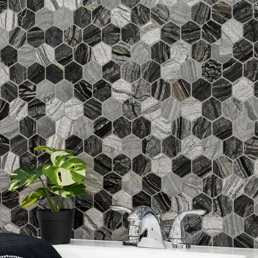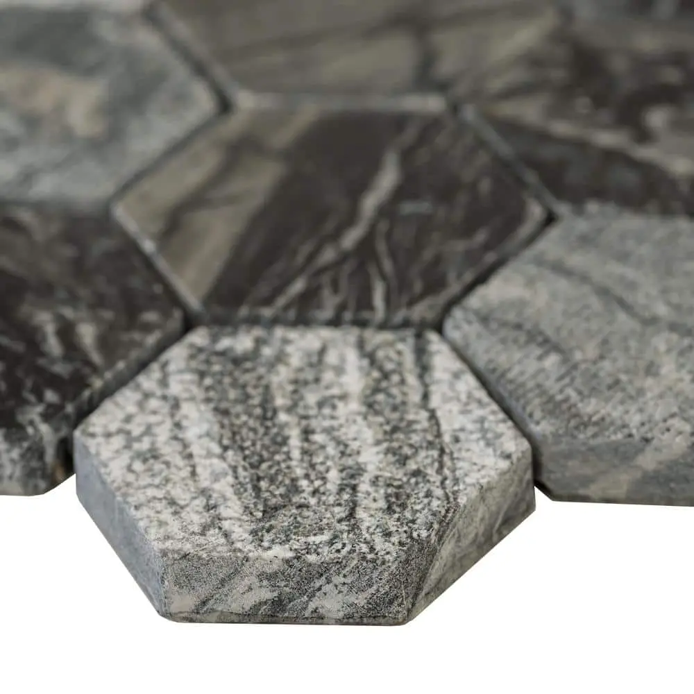 The MSI Henley Hexagon Polished Marble Mosaic Tile features an elegant polished marble finish with a stylish hexagon pattern, perfect for adding a sophisticated touch to your space. Ideal for both floors and walls, it works beautifully for backsplashes and accent areas. This tile is durable and low maintenance, resistant to stains and moisture, and easy to clean. The mesh-mounted design ensures simple installation with a pre-arranged mosaic pattern. Each sheet measures 12" x 12", covering 1 sq. ft., offering a timeless appeal that enhances a variety of interior styles.