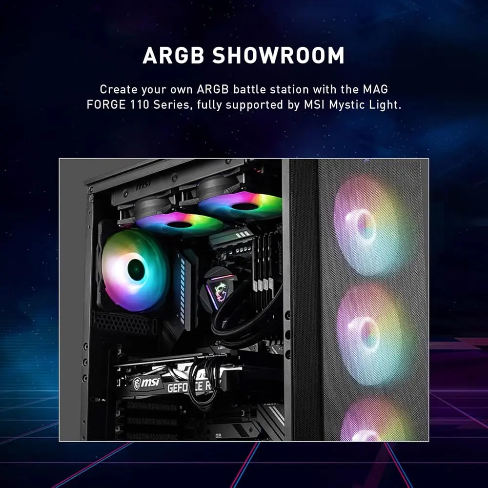 The MSI MAG Forge 112R is a formidable mid-tower PC case that combines sleek aesthetics with robust functionality. It's designed to house high-performance components and provide optimal cooling, making it the perfect choice for gamers and enthusiasts alike.