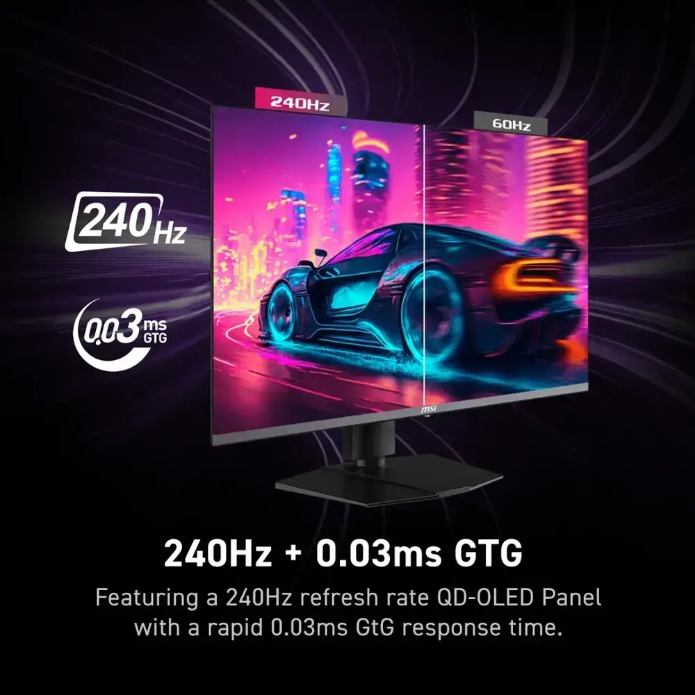 • Ultra-Responsive240Hz refresh rate and 0.03ms response time for smooth, lag-free gameplay.