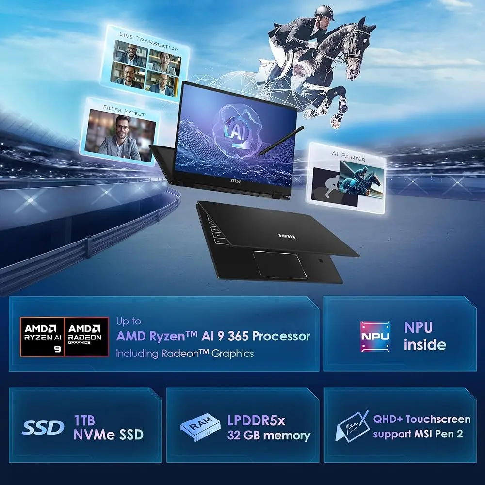 The MSI Summit A16 AI+ is a powerful and versatile 2-in-1 laptop designed for productivity and creativity. It's powered by the latest AMD Ryzen AI processor and features a stunning QHD+ display.