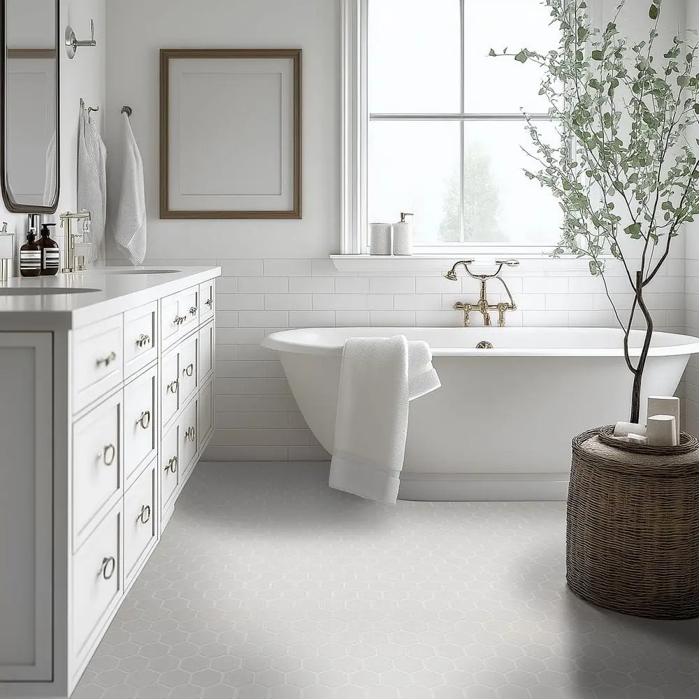 Add a touch of modern elegance to your home with the MSI White 2 in. Hexagon 11 in. x 11 in. Matte Porcelain Mesh-Mounted Floor and Wall Mosaic Tile. This versatile tile is perfect for both floor and wall applications, offering a clean, contemporary look. Crafted from durable, matte porcelain, these hexagonal tiles are built to last. The stylish hexagon shape adds a unique design element, allowing you to create stunning patterns. The easy install mesh-mounted design simplifies the tiling process. Each sheet covers 0.81 square feet