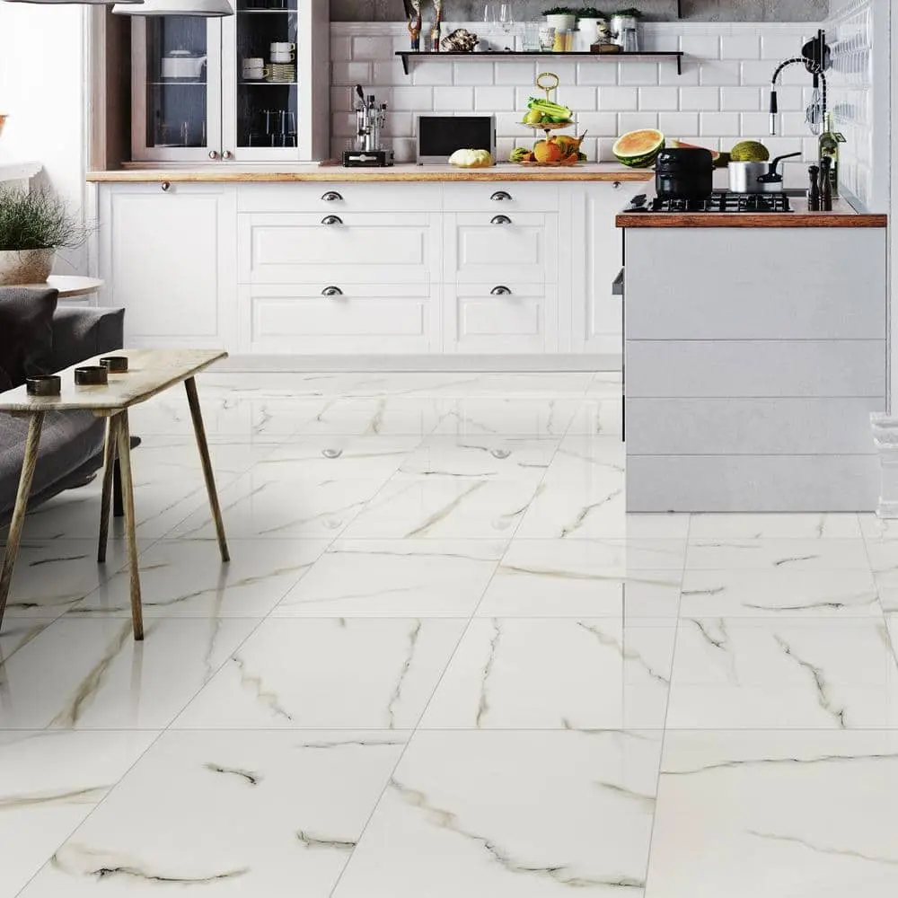 The MSI White Calacatta Bianco Tile offers a luxurious touch with its polished porcelain surface and timeless Calacatta bianco design. Each tile measures 24 in. x 24 in., covering 16 sq. ft. per case, making it an ideal choice for large-scale installations. The classic white color with elegant veining creates a sophisticated aesthetic, perfect for both floor and wall applications. With its scratch, stain, and water-resistant qualities, this tile ensures durability and long-lasting beauty, while the high-gloss polished finish adds a sleek and modern touch to any space
