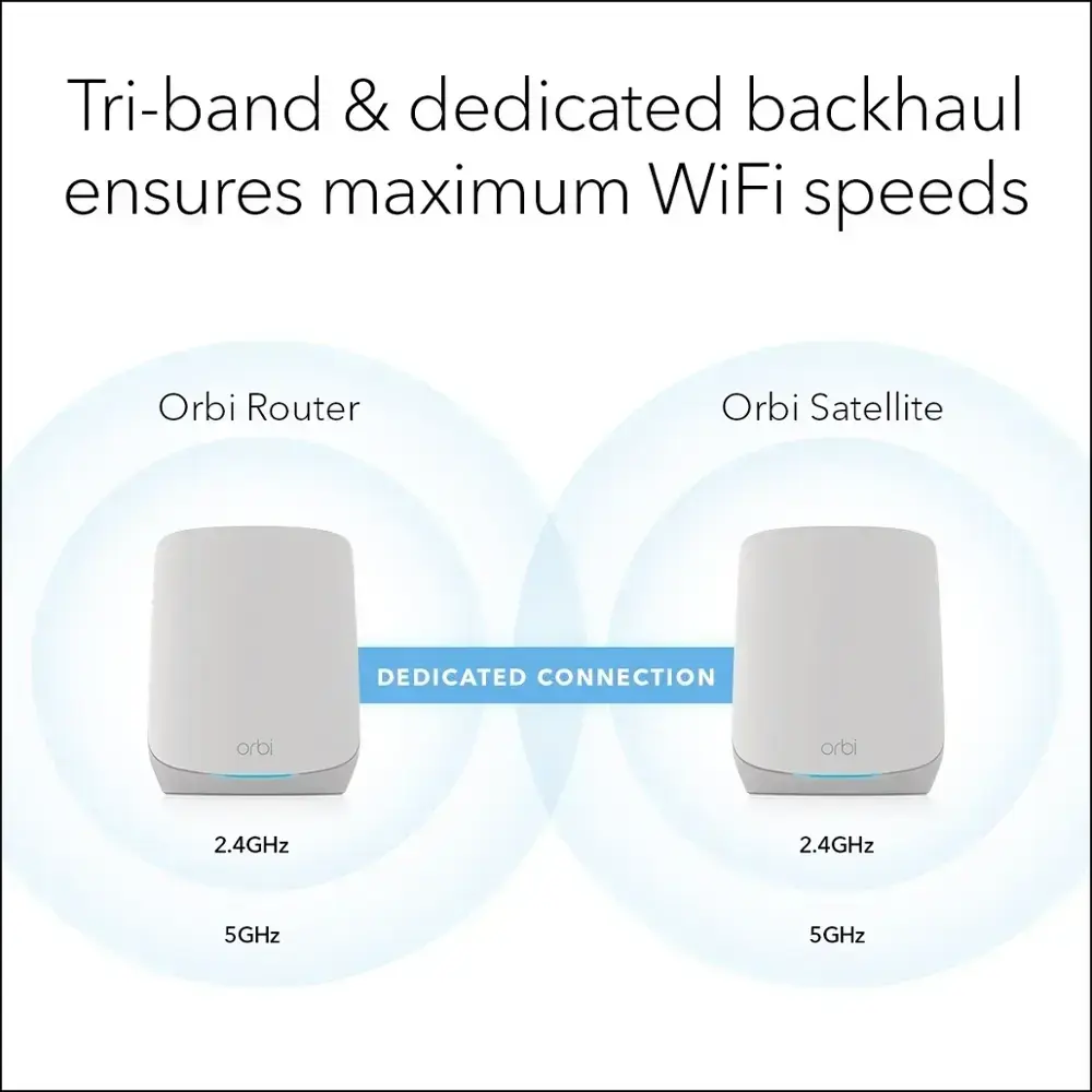 The NETGEAR Orbi 660 Series AX3800 Tri-Band Mesh Wi-Fi 6 System delivers AX3800 speeds for fast and reliable connections across all your devices. With Wi-Fi 6 support, it offers enhanced speed, capacity, and coverage, ensuring smoother performance even with multiple devices connected. The 3-pack mesh network provides seamless coverage across large areas, eliminating dead spots. Designed to handle high capacity, it efficiently supports numerous devices without lag. The easy app-based setup ensures a hassle-free installation process, and the modern white finish blends effortlessly with your home decor