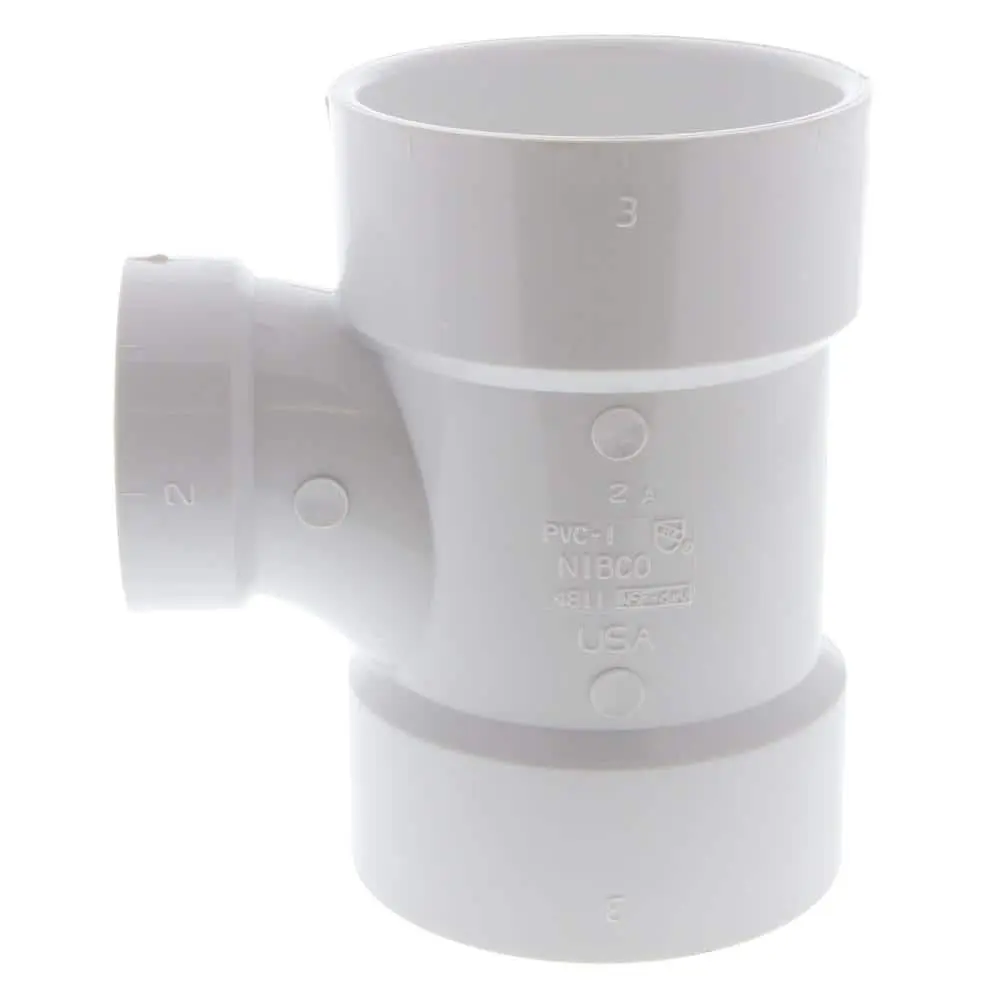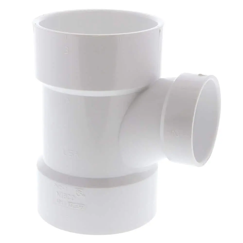 The NIBCO PVC sanitary tee is designed for use in both residential and commercial drain, waste, and vent systems. Featuring a hub x hub x hub connection and a flowing sweep, this tee facilitates the efficient evacuation of waste and fluids. It enables a seamless connection within a continuous pipeline and provides the option to branch out in a different direction.