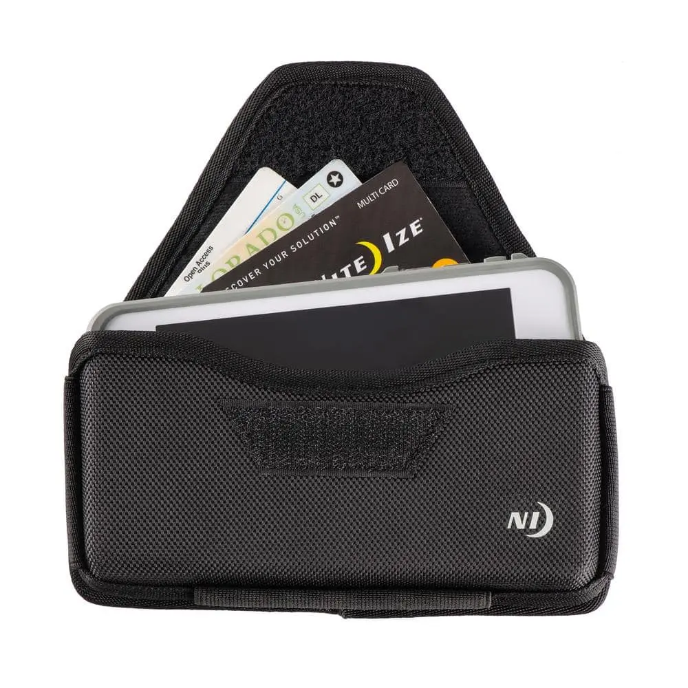 This rugged case ensures your phone stays accessible and protected from the elements. The Nite Ize Clip Case Hard-shell Holster is made from high-density EVA foam, offering protection against bumps and shocks, while the ballistic nylon adds extra durability. Available in vertical and horizontal models, it features elastic side panels that fit most phones, with or without a case. The holster has a strong hook-and-loop closure to shield your device from impacts and the elements, along with a fixed-position rugged clip that securely attaches to waistbands, belts, or backpack straps. An internal pocket stores your credit cards, ID, and cash, keeping valuables safe and easily accessible.