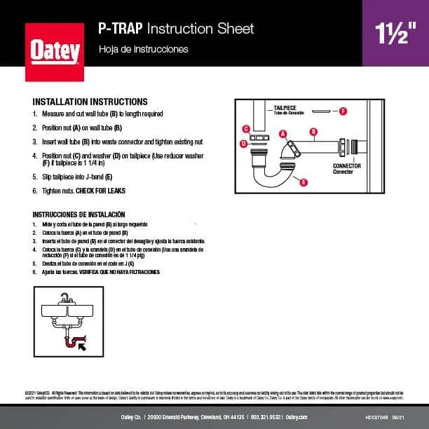 The 1-1/2 in. Plastic P-Trap is constructed from durable polypropylene plastic, making it an excellent choice for tubular drain applications. Designed for easy installation, it includes a leak-proof washer for a secure fit. Oatey products have been trusted by plumbing professionals for over a century.