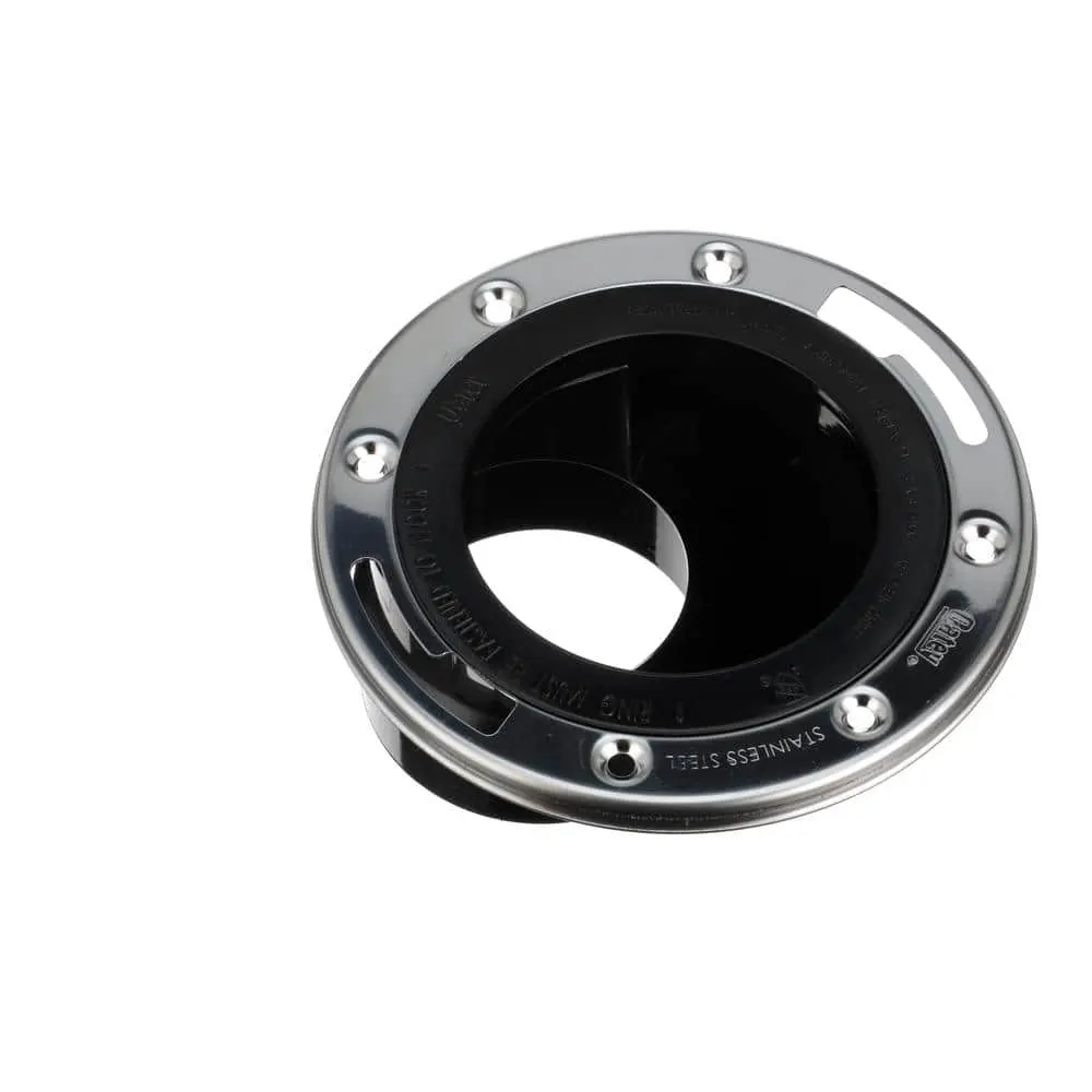 The Oatey Level Fit Offset Closet Flange is designed for durability with a stainless steel ring that enhances strength and crack resistance. The 360° swivel feature of the metal ring provides flexibility for precise alignment of bolts and screws, allowing for better adjustment and fit. Trusted by plumbing professionals for over 100 years, Oatey products ensure reliable performance.