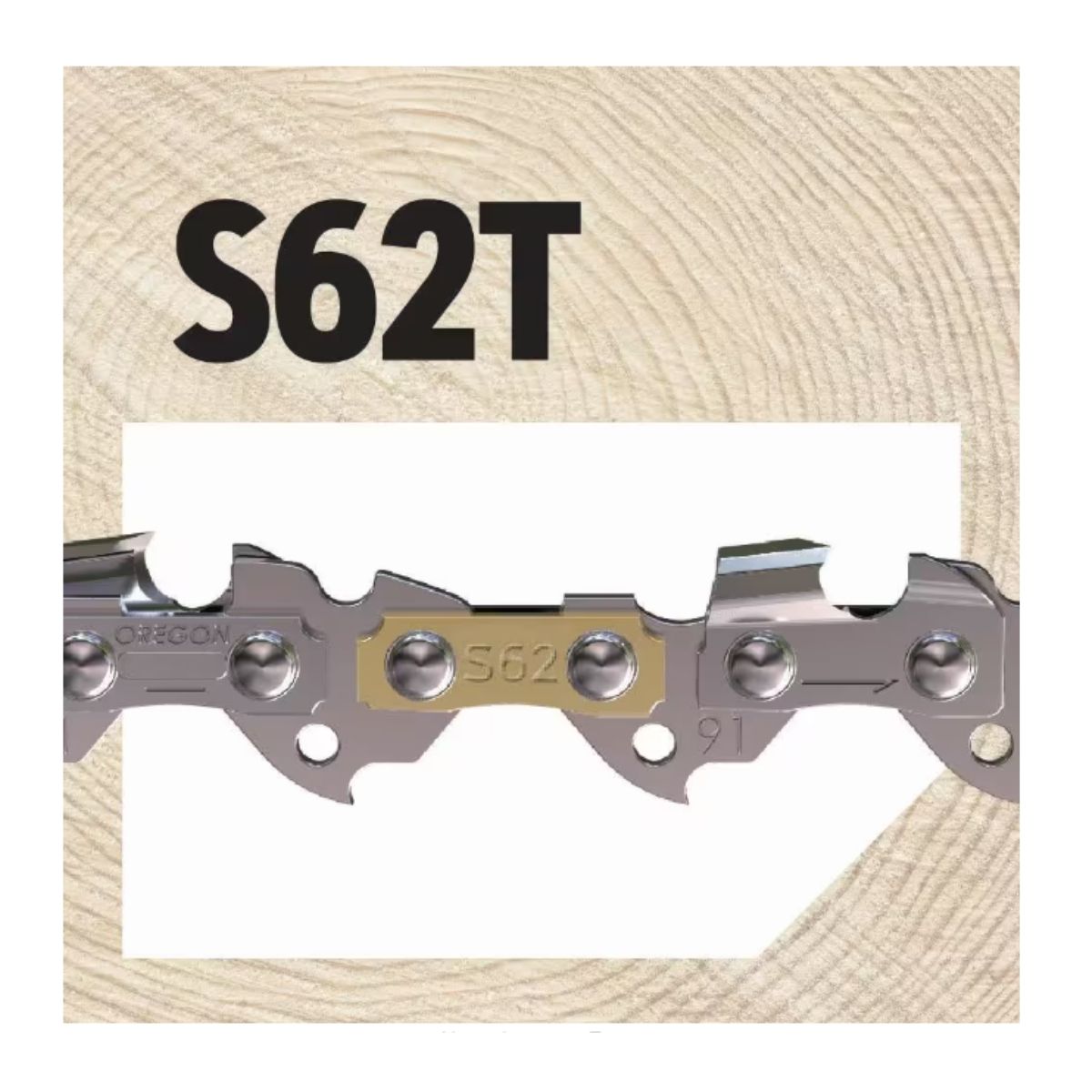 This Oregon chain showcases high-quality Chamfer Chisel cutters and a notched bumper drive link to minimize kickback, ensure efficient chip flow, and provide a seamless cutting experience. The dual corners of the cutters enhance performance on various saws that utilize low profile 3/8 in. pitch chain. Additionally, the chain is equipped with 4-way symmetrical tie straps for easy chain loop assembly.