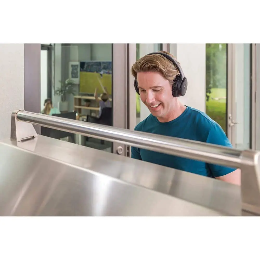 About This Product: Enjoy your TV at your preferred volume without disturbing others. Create your own personal listening zone, even while others are sleeping. Simply plug the transmitter into your TV's audio output, and the wireless headphones will deliver full stereo sound up to 100 feet away. The padded headband and ear cups provide a comfortable fit, and on-headset controls make volume adjustments easy. No Bluetooth connection is required.