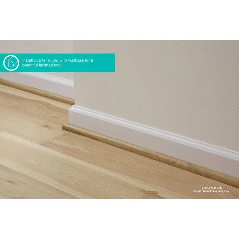 Enhance your flooring with the PERFORMANCE ACCESSORIES Fresh Quarter Round Molding, designed for a seamless and polished finish. Measuring 0.62 in. thick, 0.75 in. wide, and 94.5 in. long, this molding provides excellent edge coverage and smooth transitions between floors and walls. Its durable construction ensures long-lasting performance, while the fresh finish complements a variety of flooring styles. Easy to install, this molding is perfect for both professionals and DIYers looking to achieve a refined look