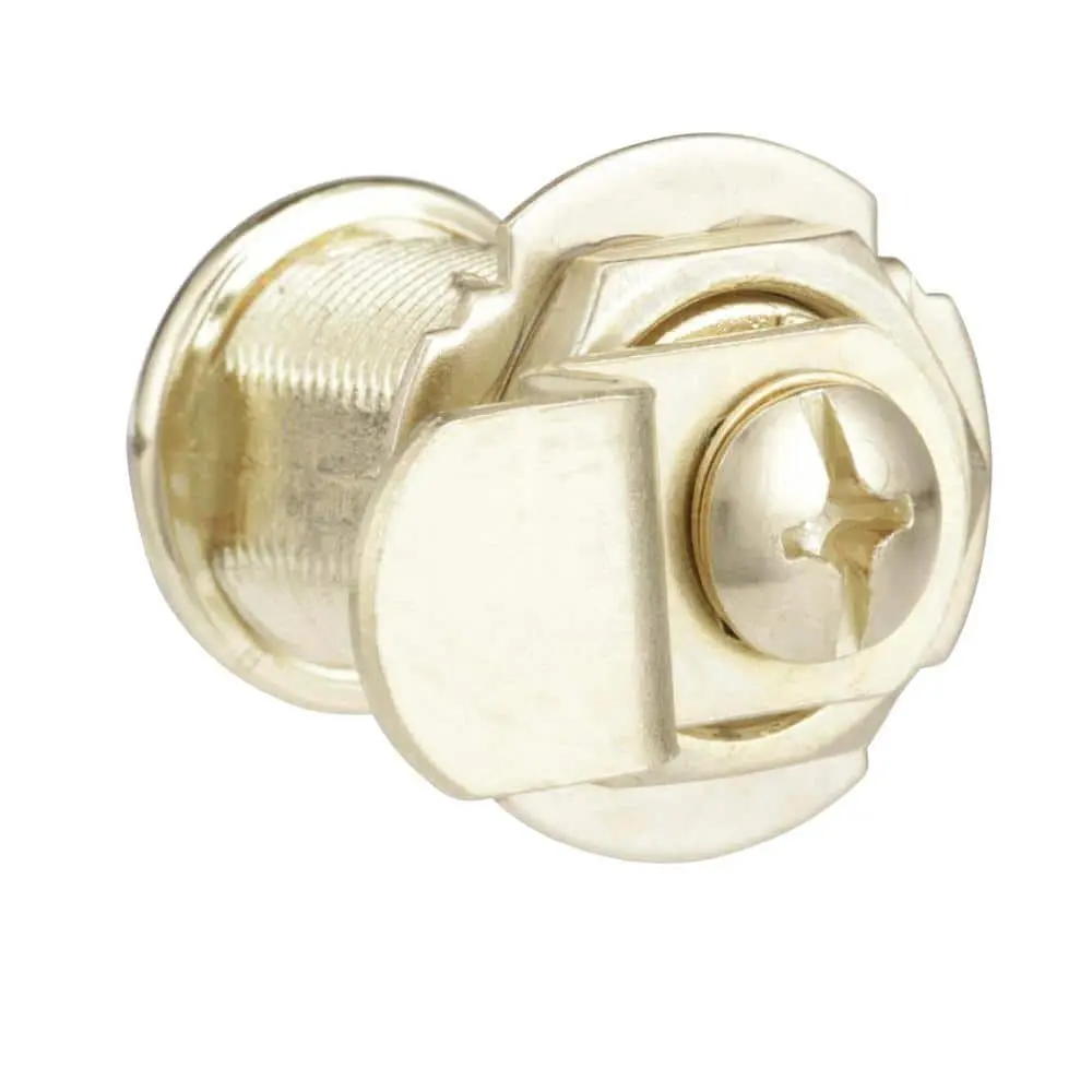This drawer and cabinet lock offers a simple and effective way to secure drawers, files, and small items. Made from durable diecast and steel components with a brass finish, it features a 3/4 inch outside cylinder diameter and a 1-1/8 inch length, suitable for panels up to 13/16 inches thick. With easy installation and compatibility with both metal and wood panels, this lock includes everything needed for installation: 3 cams, a trim collar, 2 reversible rotation washers, 2 keys, and fasteners. The lock is keyed differently with a Yale Y-11 keyway.