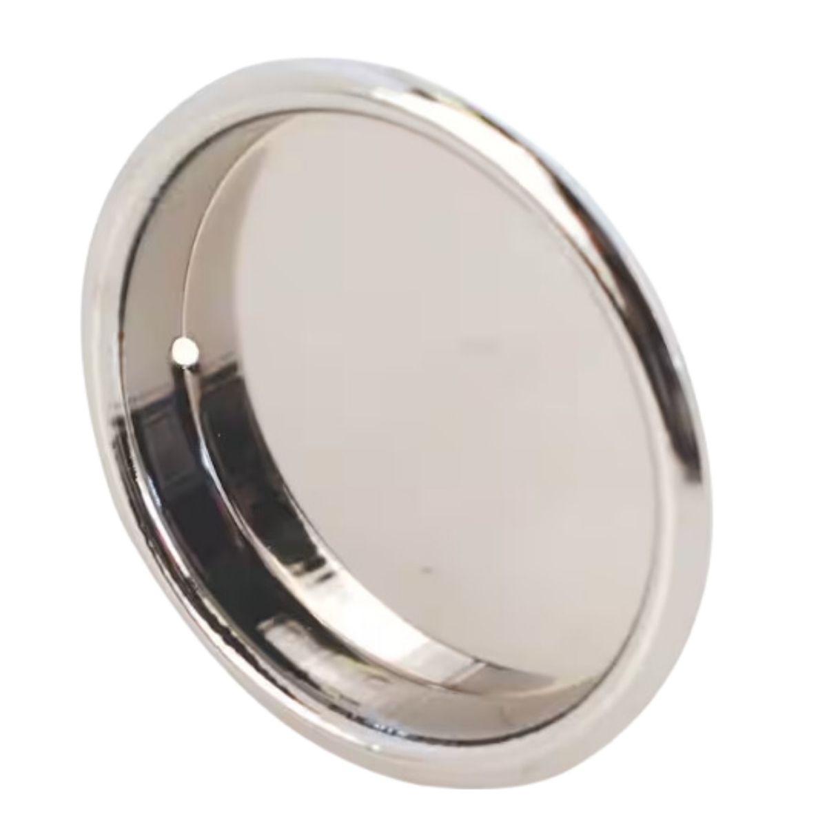 These mortise pulls, crafted from stamped steel with a chrome-plated finish, are designed for use on by-passing wardrobe doors. Featuring a slim 5/16 inch depth and a 2-1/8 inch outside diameter, they accommodate door thicknesses ranging from 3/4 inch to 3-1/4 inch. Widely favored for their ease of installation, these pulls are a popular choice among users seeking both practicality and style for their wardrobe doors.