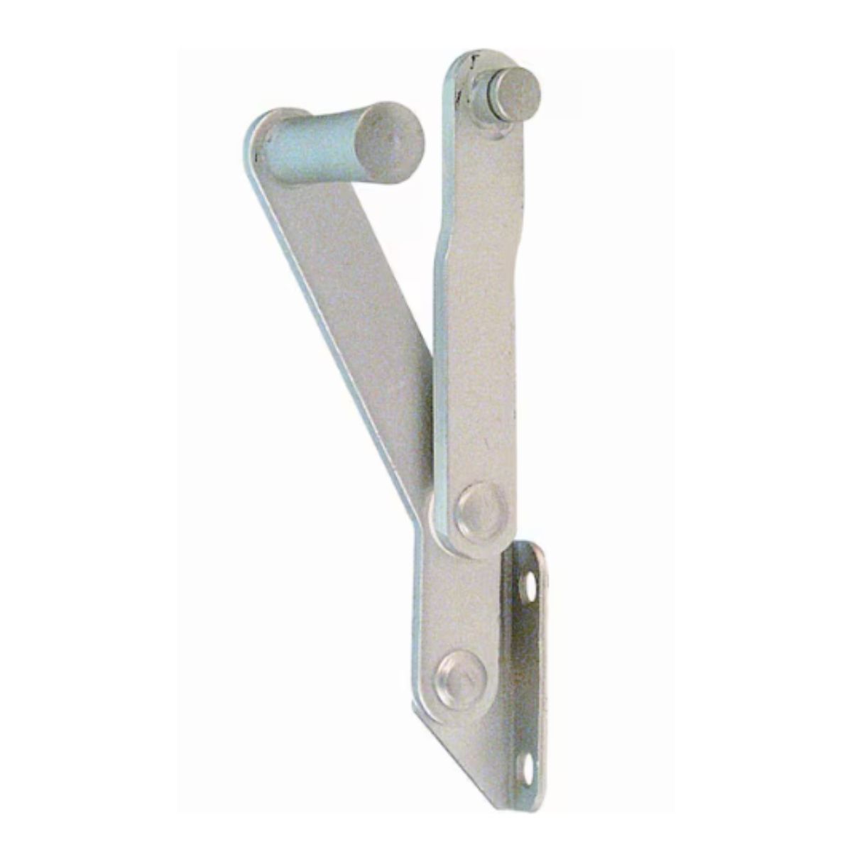 This lever-style louver or jalousie operator is designed for International series 400 windows. It is specifically crafted for left-handed operation and is constructed from aluminum. Featuring a grooved stud for attachment to the moving arm on the jalousie or louver frame, it comes with mounting holes spaced 1 inch apart.
