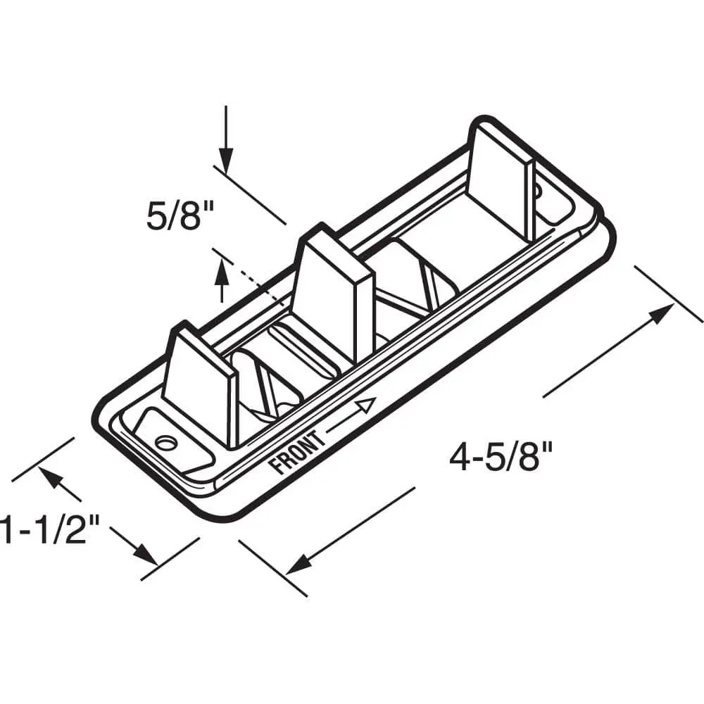 This adjustable sliding closet door floor guide is made from stamped steel and features durable nylon tips. Designed to fit doors ranging from 3/4 inch to 1-3/8 inch thick, this guide is commonly used by Acme and other closet door manufacturers. It includes fasteners for easy installation.