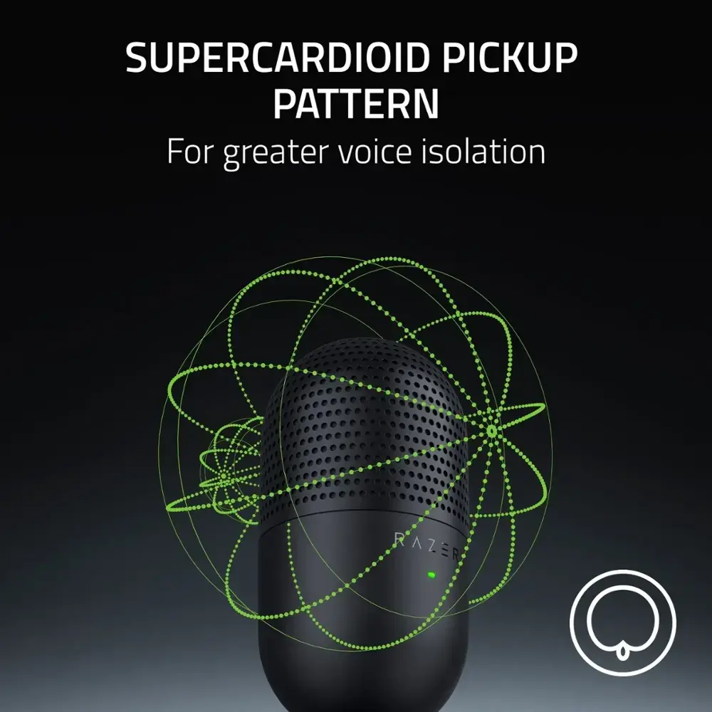 The Razer Seiren V3 Mini Wired Ultra-compact Condenser USB Microphone offers exceptional sound quality in a compact, space-saving design. Featuring a condenser microphone, it delivers clear and crisp audio perfect for streaming, podcasting, or recording. The USB connectivity ensures easy plug-and-play setup, while the cardioid polar pattern captures sound from the front while minimizing background noise for optimal clarity. With a built-in shock mount, it reduces unwanted vibrations for clean audio. Plus, the customizable RGB lighting adds a personal touch to your setup. This microphone is ideal for those looking for professional sound in a compact package