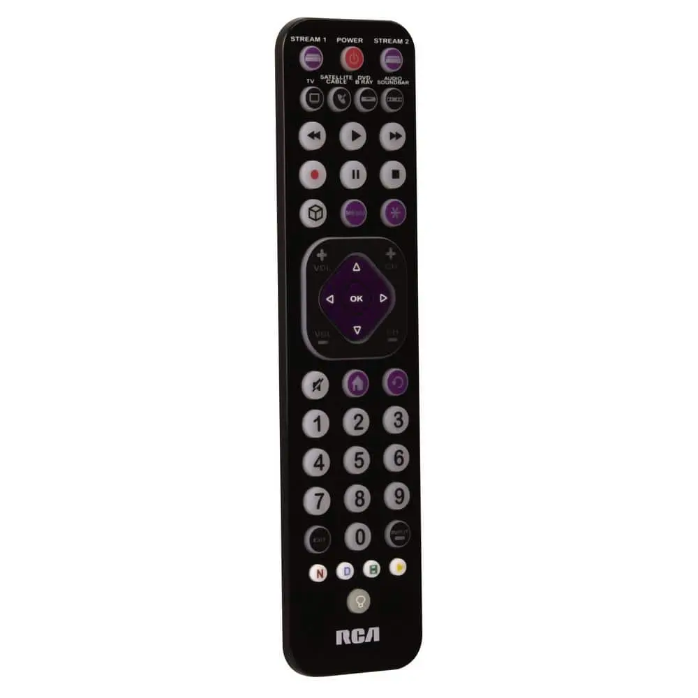 The RCA Ultra-Thin Universal Remote Control enhances your entertainment experience. This 6-device remote is designed for ease of use and setup, offering automatic, brand, manual, and direct code search options. Replace and consolidate your old remotes with this trusted RCA remote. Control up to 6 devices and enjoy quick access to popular streaming services like Netflix, Disney+, Hulu, and YouTube.