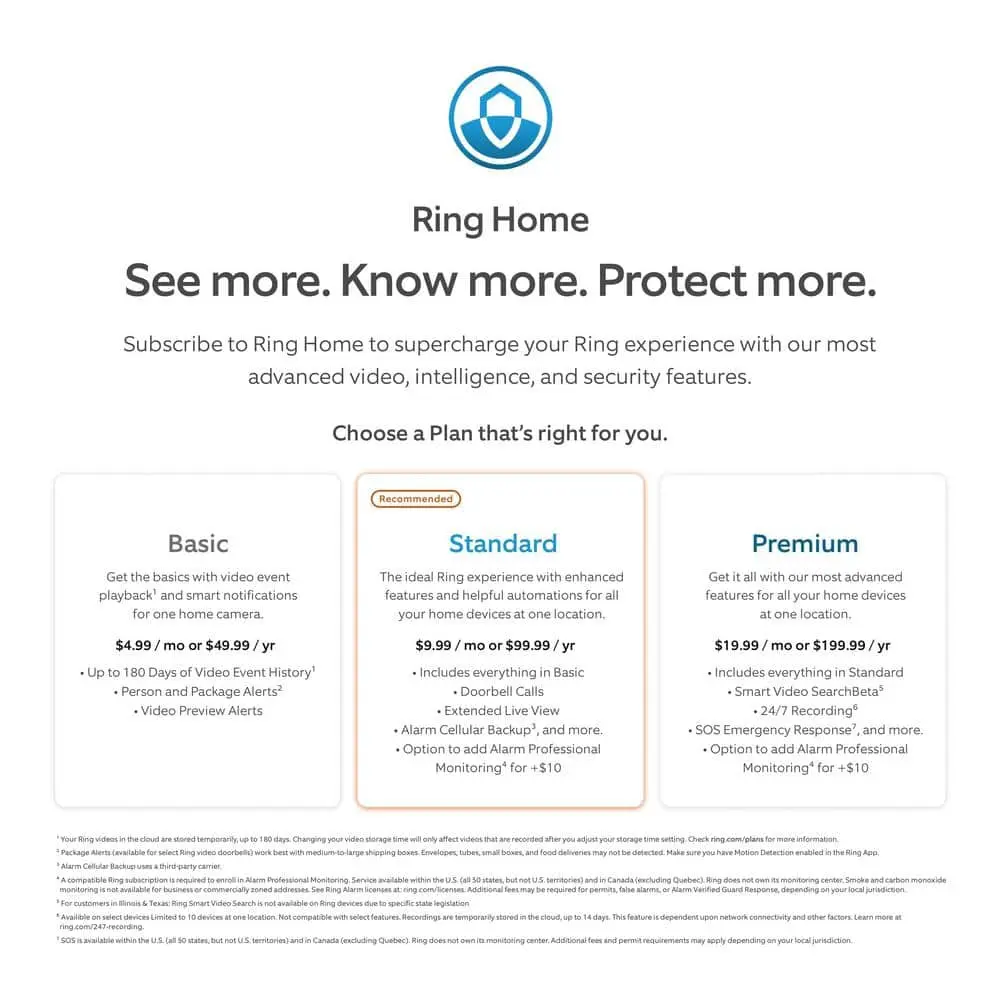 Note: Ring videos are stored in the cloud temporarily, up to 180 days. Smart Video Search is not available in Illinois and Texas due to state regulations. Subscription required for select features.