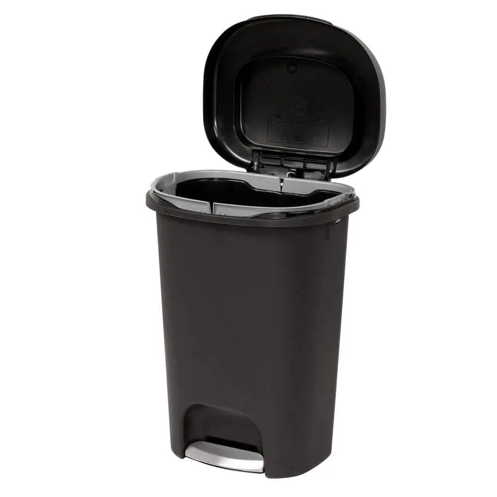 The Rubbermaid Step-On Waste Can with Liner Lock offers both convenience and innovation. Its Liner Lock feature uses wires to securely hold the trash bag in place, preventing it from sliding down. This sleek waste container not only keeps your space tidy but also conceals refuse from view.
