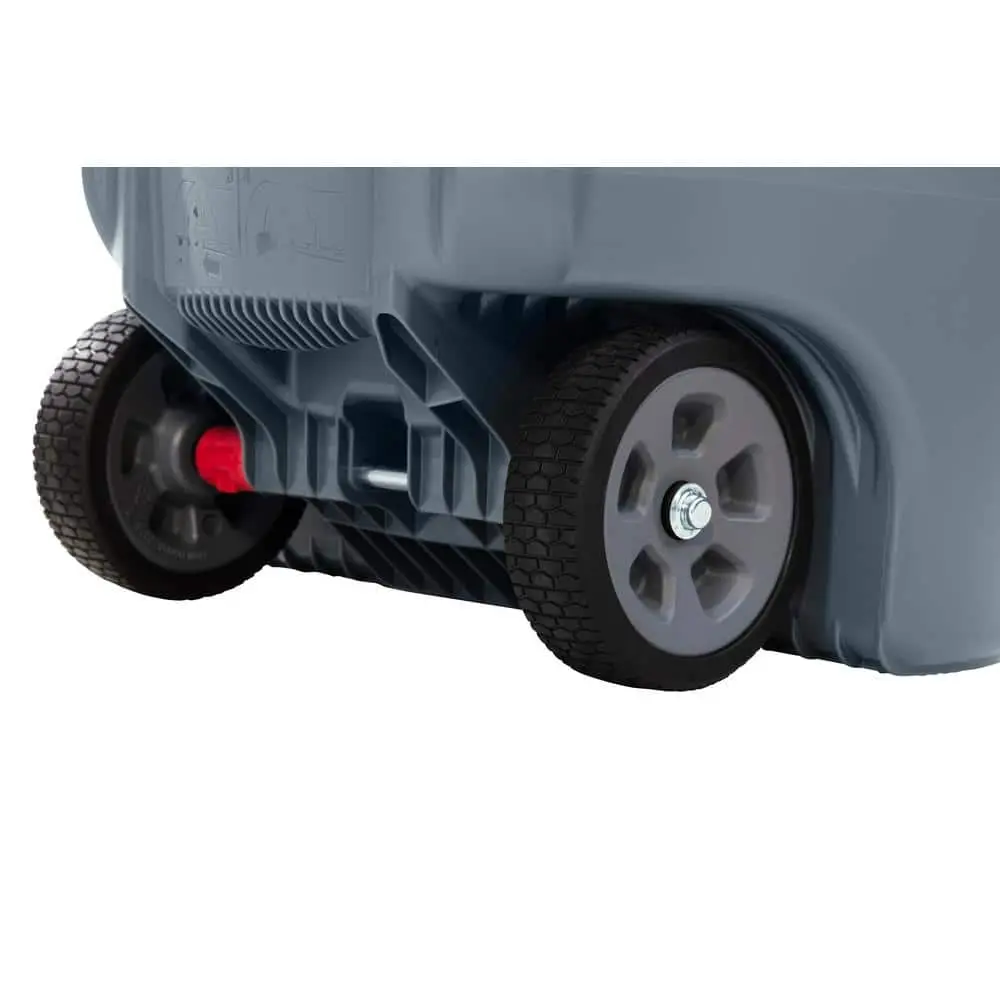 The Rubbermaid Commercial Wheeled BRUTE container makes moving heavy loads 5X easier, even over rough terrains, enhancing productivity and minimizing the risk of injury. Built with top-quality materials and a UV inhibitor, it offers long-lasting durability in even the harshest commercial environments. Tested for strength, the Wheeled BRUTE is designed with the same toughness as the classic BRUTE for exceptional performance. Its ergonomic handle reduces the effort needed to move heavy loads of up to 180 lbs.