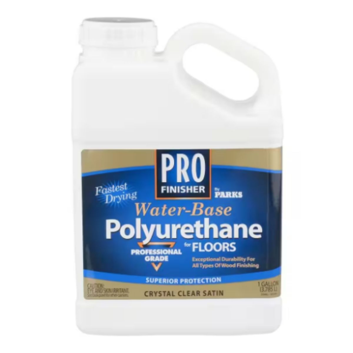 Parks 1 gal. Clear Polyurethane is a high-quality protective finish designed to enhance and preserve all types of wood surfaces. Its fast-drying formula ensures professional-grade results without the need for specialized equipment or professional assistance. Ideal for use over most solvent-based stains, this polyurethane offers a non-flammable, non-yellowing clear gloss finish that covers up to 650 sq. ft. per gallon. It provides superior durability, offering excellent resistance against chemicals and abrasions. Cleanup is easy with soap and water. Additionally, the online price includes a PaintCare fee in select states, promoting environmentally responsible disposal.