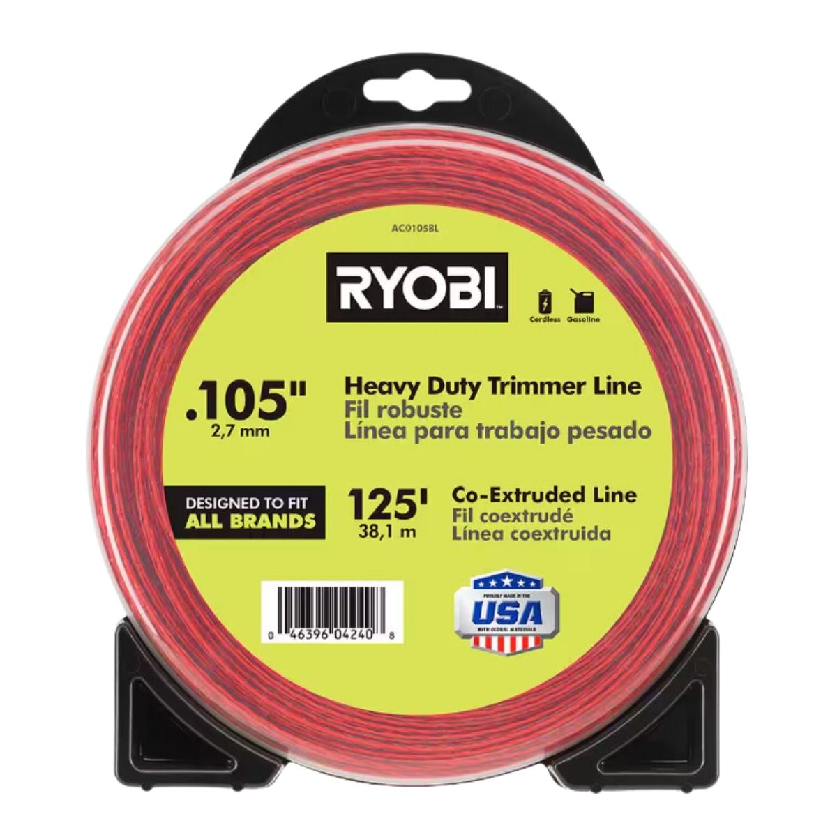 The RYOBI Heavy-duty .105 in. x 125 ft. spiral line enables you to effortlessly and securely cut through dense grass and weeds. This line is specifically engineered for gas or cordless string trimmers, ensuring optimal performance during heavy-duty tasks.