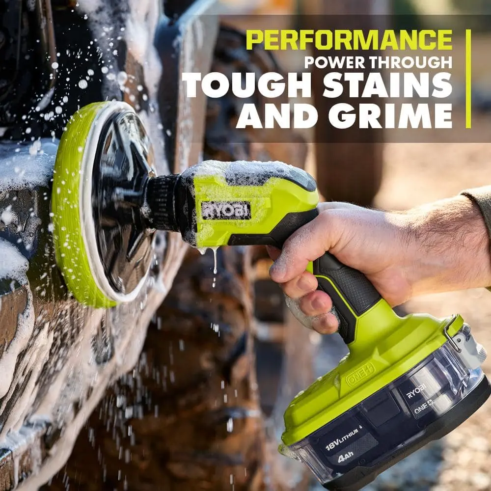 The RYOBI 18V ONE+ VORTEX Power Scrubber is a powerful, versatile tool designed to tackle tough stains and grime. Weighing just 2.7 pounds, its lightweight and cordless design offers easy portability for on-the-go cleaning. Compatible with all RYOBI Triangle Connector accessories (sold separately), it includes a 7" VORTEX Medium Bristle Brush, ideal for cleaning tile, fiberglass, and plastic. With an IPX7 water resistance rating, it can be submerged in up to 3 feet of water for 30 minutes. Powered by ONE+ batteries (sold separately), it’s part of the RYOBI 18V ONE+ System, which includes over 300 cordless products. Battery and charger sold separately.