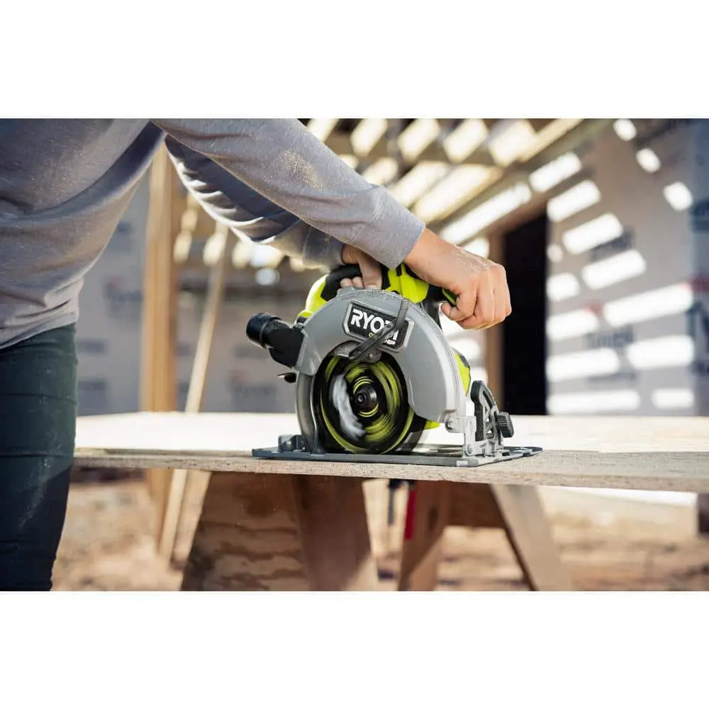 The RYOBI 18V ONE+ HP Brushless line is setting new standards in power and performance. The 18V ONE+ HP Brushless 7-1/4 in. Circular Saw features a brushless motor that delivers 40% faster cutting and over 325 cuts per charge, making it a more efficient choice than previous tools. Its die-cast upper guard enhances durability for tough work environments. Keep your workspace clean with the included vacuum dust adaptor, ensuring minimal cleanup at the end of the job. The adjustable depth gauge and bevel gauge provide precision for every cut. Elevate your ONE+ collection with this high-speed, accurate saw. Plus, it is compatible with the RYOBI ONE+ System of over 300 cordless products, all using the same battery platform.Includes the PBLCS300 18V ONE+ HP Brushless 7-1/4 in. Circular Saw, vacuum dust adaptor, 24T thin kerf blade, hex wrench, and operator’s manual (battery and charger sold separately).