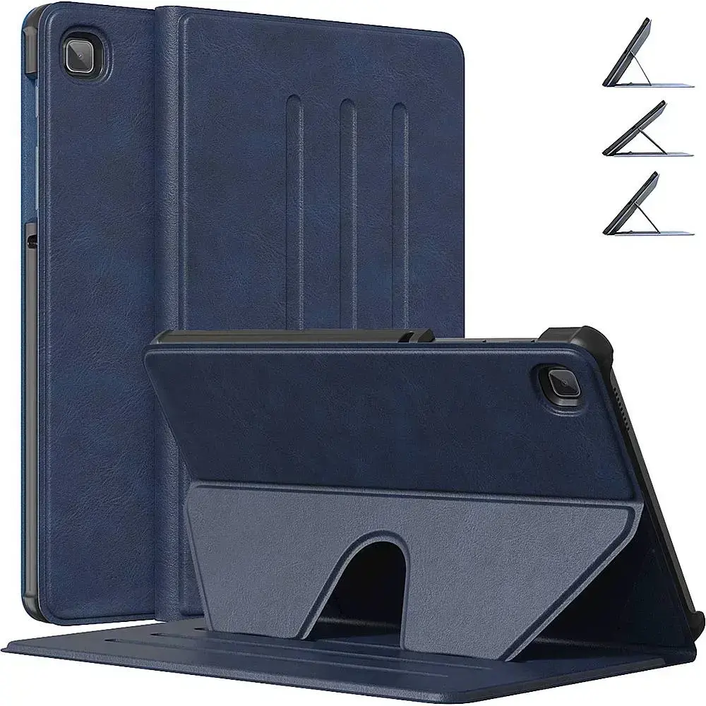Enhance your Samsung Galaxy Tab A7 with this SaharaCase multi-angle case. Crafted from durable materials, it shields your device from drops and scratches, while the multi-angle kickstand ensures hands-free use. The indigo case features an open-button design for easy handling, and its lightweight, form-fitting design enhances portability.
