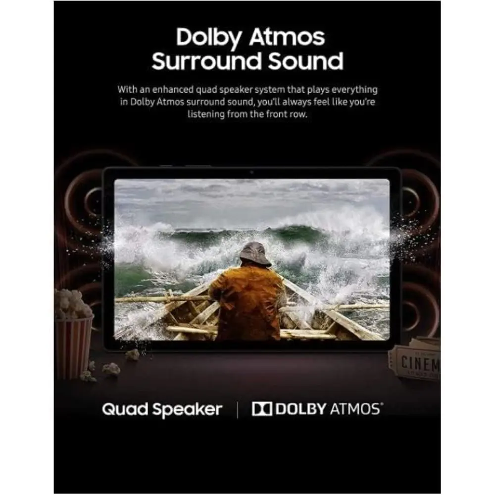 The Galaxy Tab A7 brings together sleek design and an immersive entertainment experience. Its ultra-widescreen 10.4-inch display with 2000 x 1200 (WUXGA+) resolution enhances movies and shows, while Dolby Atmos surround sound from quad speakers places you at the heart of the action. The landscape-oriented front camera allows you to connect with family and friends as if you're in the same room. Equipped with a fast Qualcomm Snapdragon 662 processor, 3GB of RAM, and a long-lasting 7040mAh battery, the Tab A7 lets you stream, browse, and enjoy your favorite music and photos with ease.