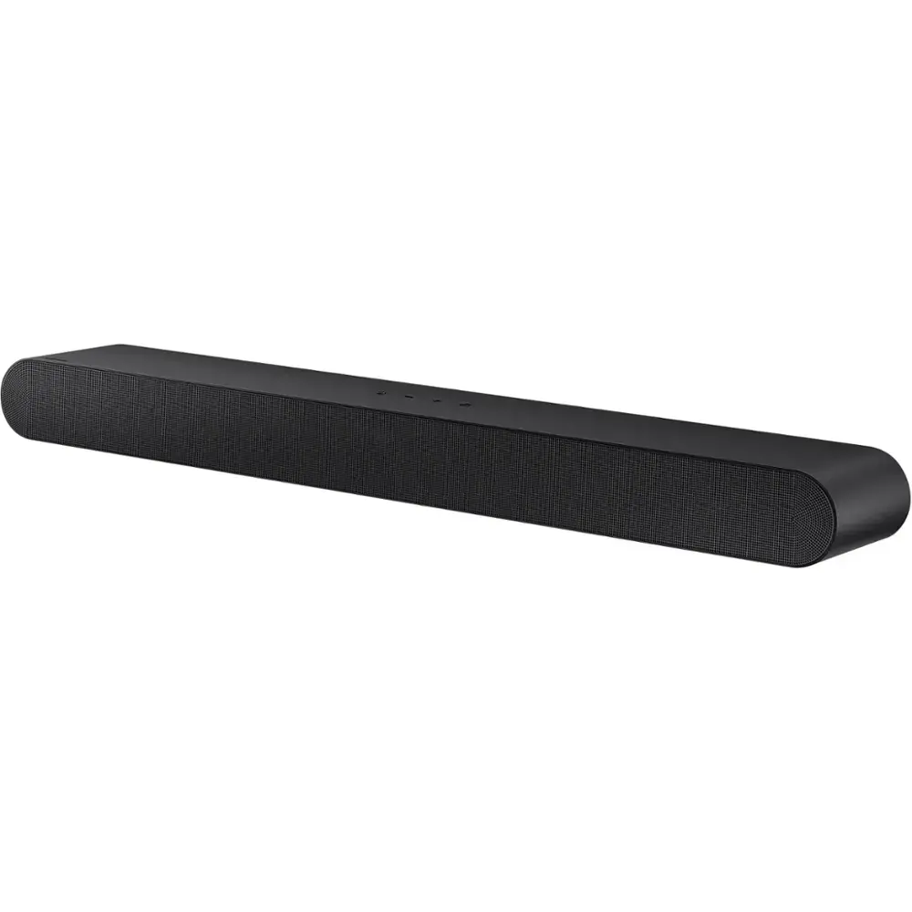 The Samsung HW-S50B 3.0 Channel S-Series Soundbar offers crystal-clear audio with Dolby 5.1 and DTS Virtual:X technology for a captivating surround sound experience. Featuring a built-in center speaker for enhanced dialogue clarity and Adaptive Sound Lite for optimized performance, this soundbar ensures high-quality sound across various content types. With Bluetooth and Wi-Fi connectivity, enjoy seamless streaming with a sleek, stylish design