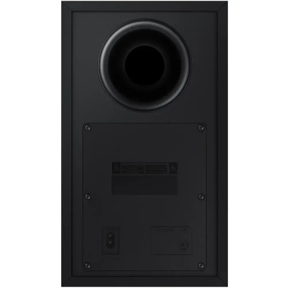 Experience immersive sound with the Samsung HW-S700D 3.1 Channel S-Series Soundbar, featuring a Wireless Subwoofer for deep, powerful bass and Dolby Atmos & DTS:X technology that delivers 3D surround sound for a cinematic experience. With Q-Symphony, it seamlessly synchronizes with compatible Samsung TVs for enhanced audio performance. The Adaptive Sound feature ensures optimal sound quality for different content, whether you're watching movies, listening to music, or catching up on the news. Designed in Titan Black, this soundbar adds a sleek, modern touch to your entertainment setup, while Bluetooth & HDMI Connectivity offers effortless pairing with your devices